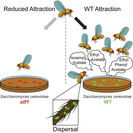 효모에 대해 더 궁금해져서 논문을 찾던 중 재미있는 논문 하나를 발견했다. 2014년에 Joaquin F. Christiaens라는 사람이 Cell Reports에 "The Fungal Aroma Gene ATF1 Promotes Dispersal of Yeast Cells through Insect Vectors "라는 제목으로 올린 논문인데 내용을 요약해 보면,
