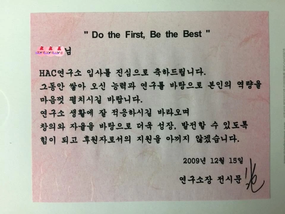 오래간만에 공부를 할까 해서 책을 뒤적거리다 책장 사이에 꽂혀 있던 사진엽서 한 장을 발견했다. LG전자 연구소에 입소하고 연구소장님과 면담 중 소장님 자리에 앉아 찍은 사진인데 나중에 꼭 연구소장 자리에 앉길 바란다고 하신 말씀이 아직 기억에 남는다.