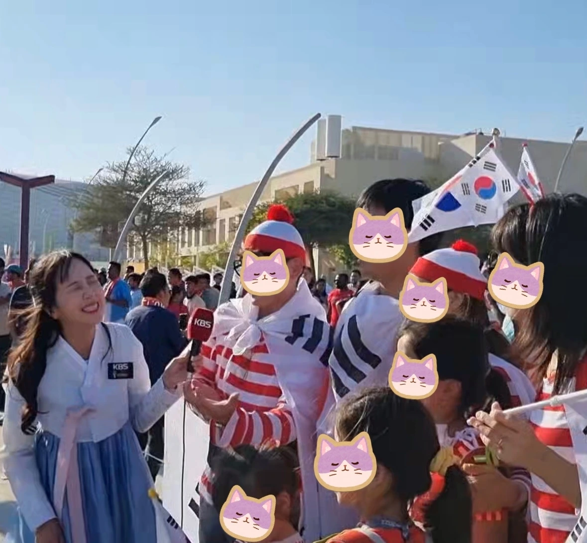 그중 최고의 성과(?)라고 할 수 있는 것이 방송사 인터뷰였는데, 국내 메이저 3사 인터뷰 성공이라는 기록을 세우게 됐다. 복장이 특이하기도 했고 두 가족이 우르르 몰려다니다 보니 눈이 많이 띠였던 것 같다. 한국과 포르투갈의 마지막 경기가 있던 날에는 포르투갈 방송국, CNN 스포츠, ESPN, 카타르 방송 등 여러 방송사와 인터뷰를 했었고, 이 장면을 본 국내외에 사는 지인뿐 아니라 사우디 동료들에게까지 많은 연락을 받았었다. "너 정말 미친놈 같다고..." 그도 그럴 것이 포르투갈 방송국과 인터뷰하는 동안 리포터의 질문이 "크리스티아노가 두렵지 않느냐"라는 질문에 "누구? 크리스티아노? 너무 늙어서 잘하겠어?"라는 답변을 했기 때문이다.