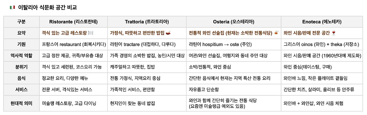 구글맵에서 추천받은 식당과 근처의 다른 가게들도 살펴보다가, 어떤 곳은 Osteria, 어떤 곳은 Ristorante 라는 이름이 붙어있어서 각각의 성격과 차이점이 궁금해졌다.