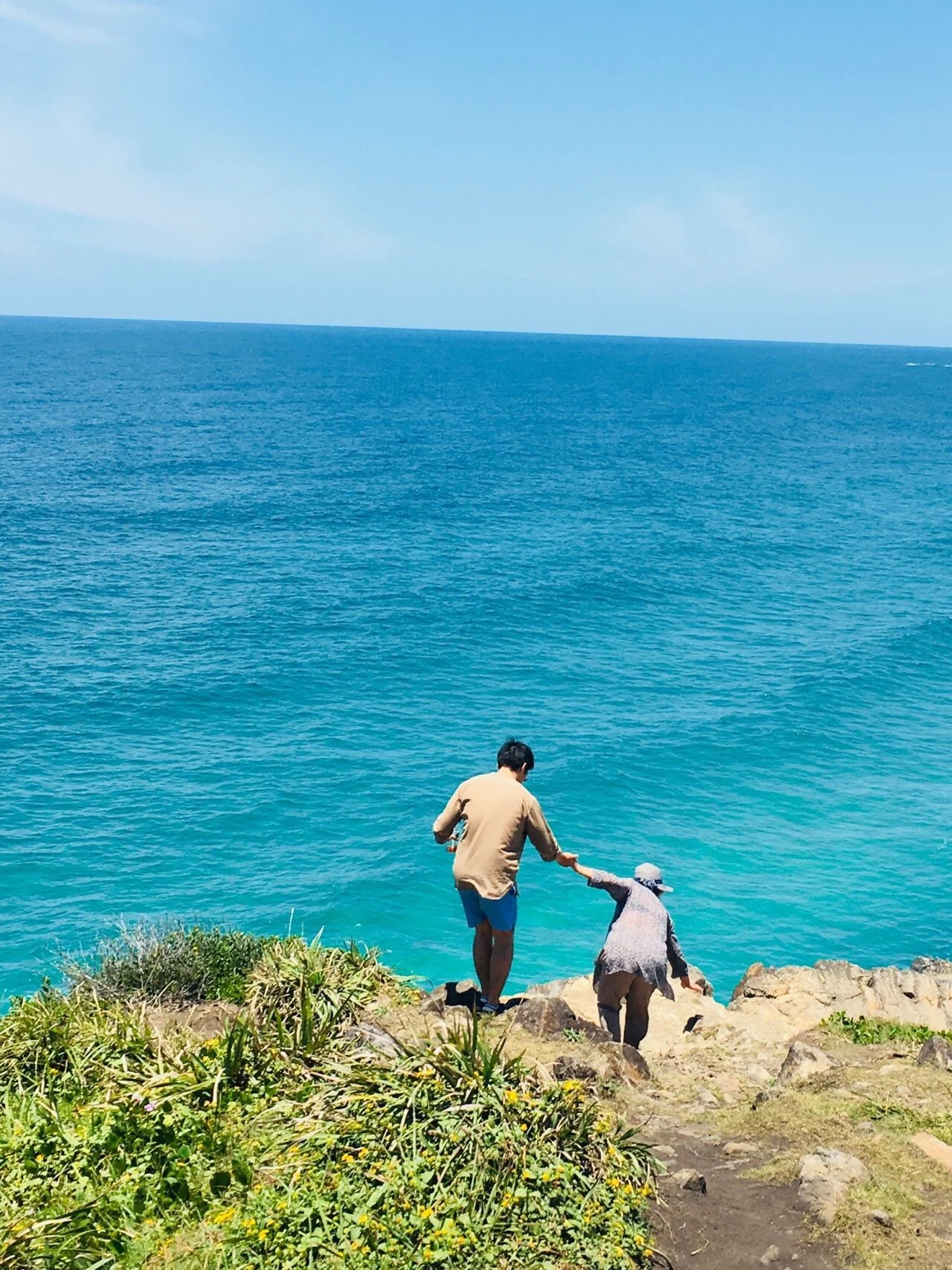 길이 험해지면 손자는 나이 드신 할머니를 과보호합니다.
