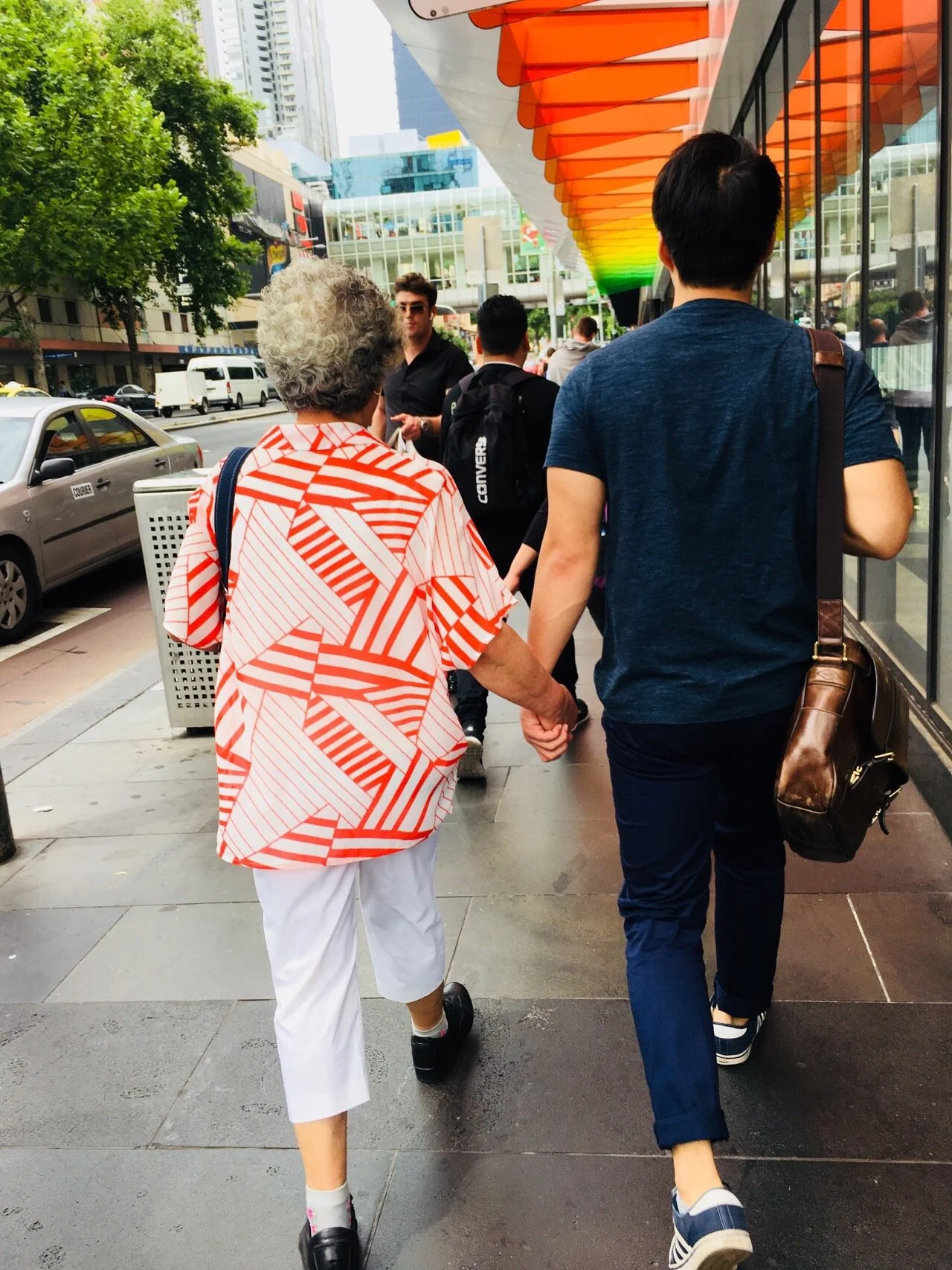 쇼핑을 다니면서도 할머니를 항상 먼저 챙기며 손을 잡고 다닙니다.