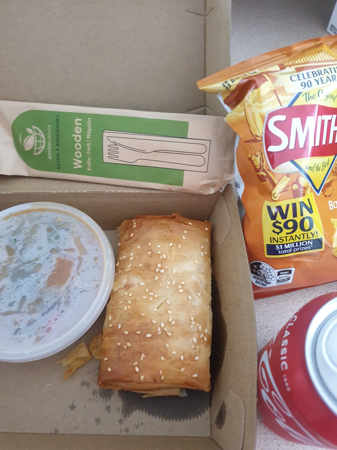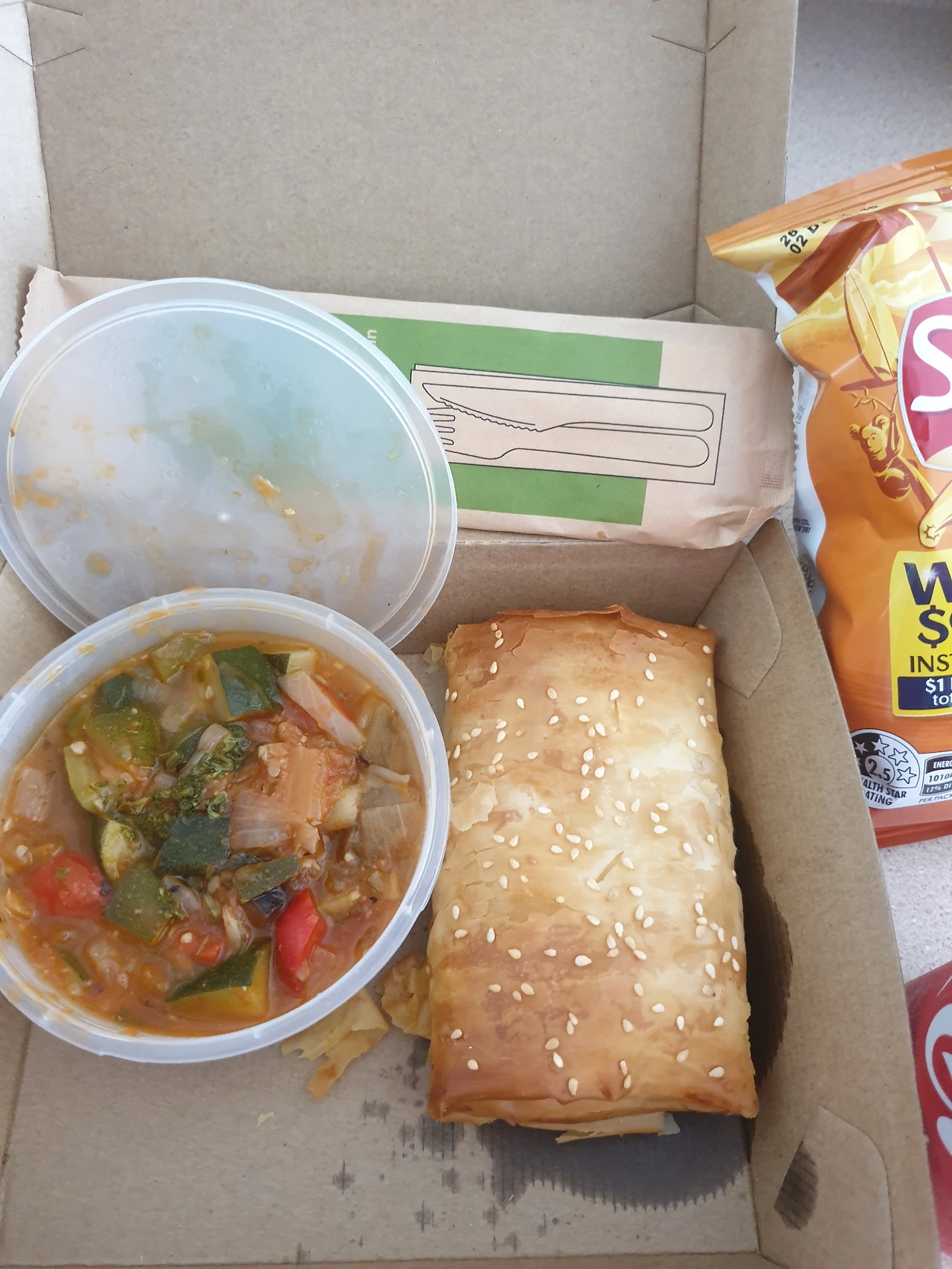 오늘 점심은 야채수프와 치킨 파이였다. 따듯한 야채수프를 먼저 먹고 닭고기 파이는 기름져서 한 입만 맛만 보고 남겼다. 아침에 알레르기도 있었고 한국에서부터 잃어버린 식욕으로 아직까지 배고픔도 먹고 싶음도 없는 상태라 약을 먹기 위해 억지로 조금씩 먹었다.