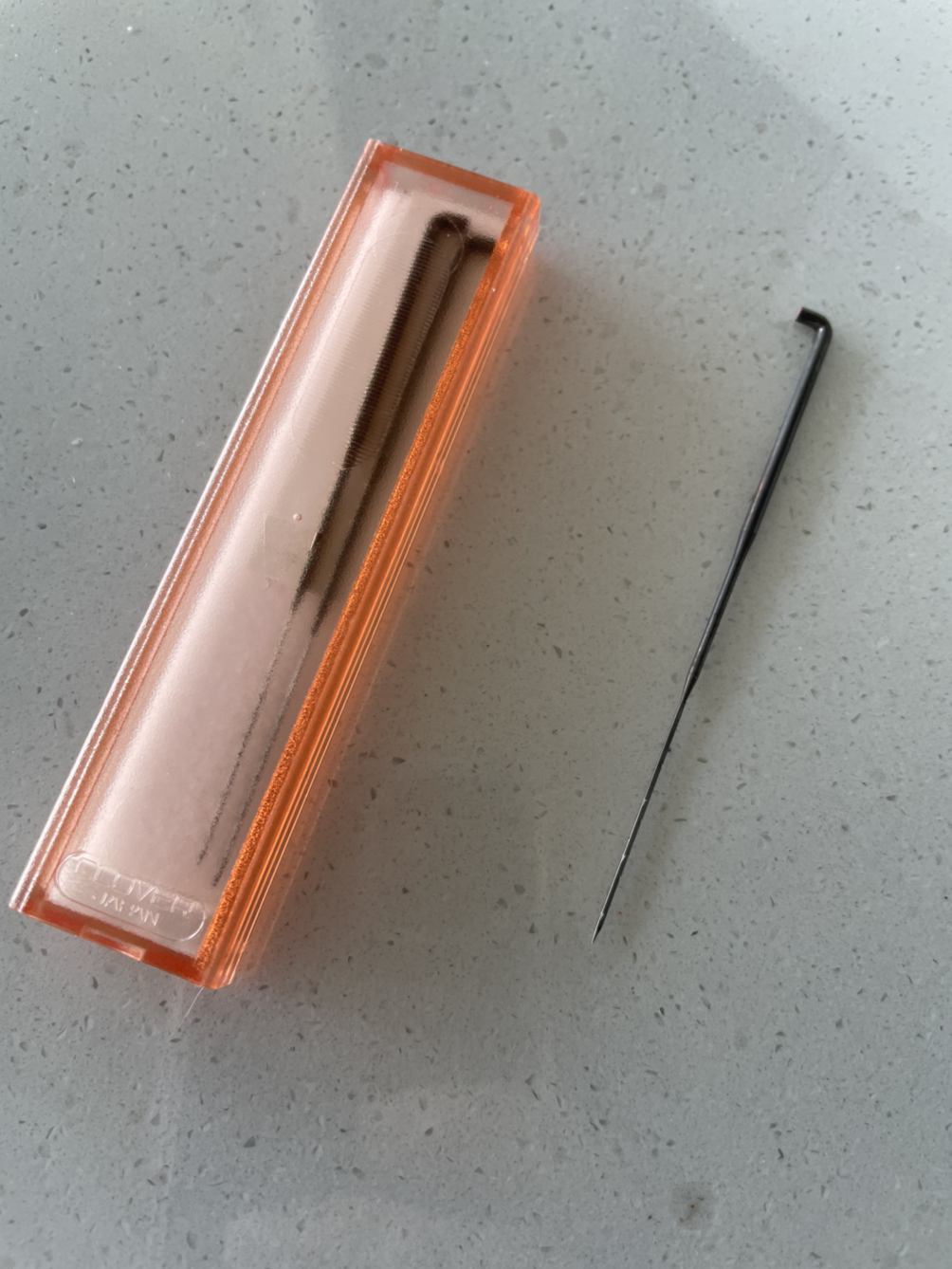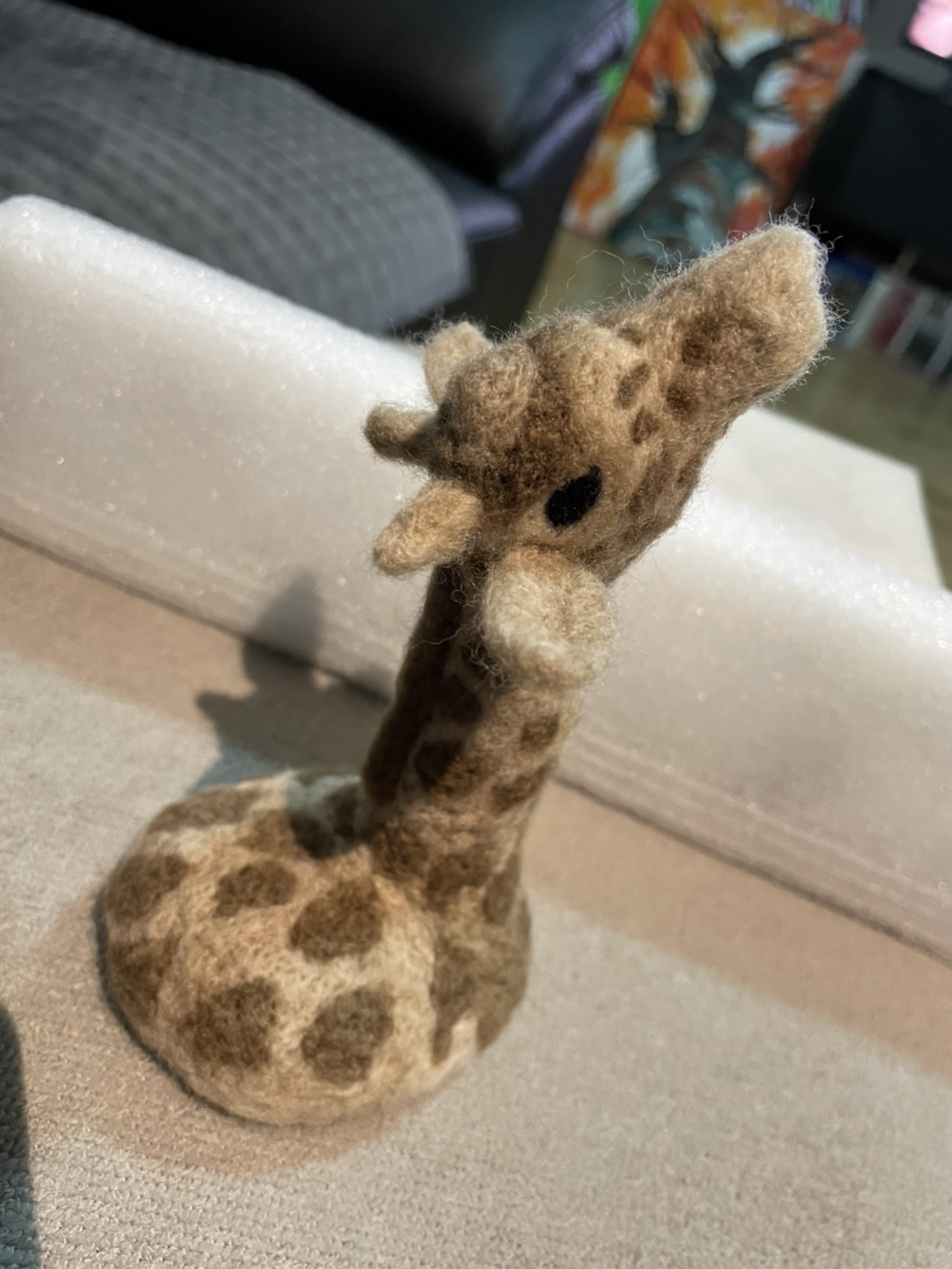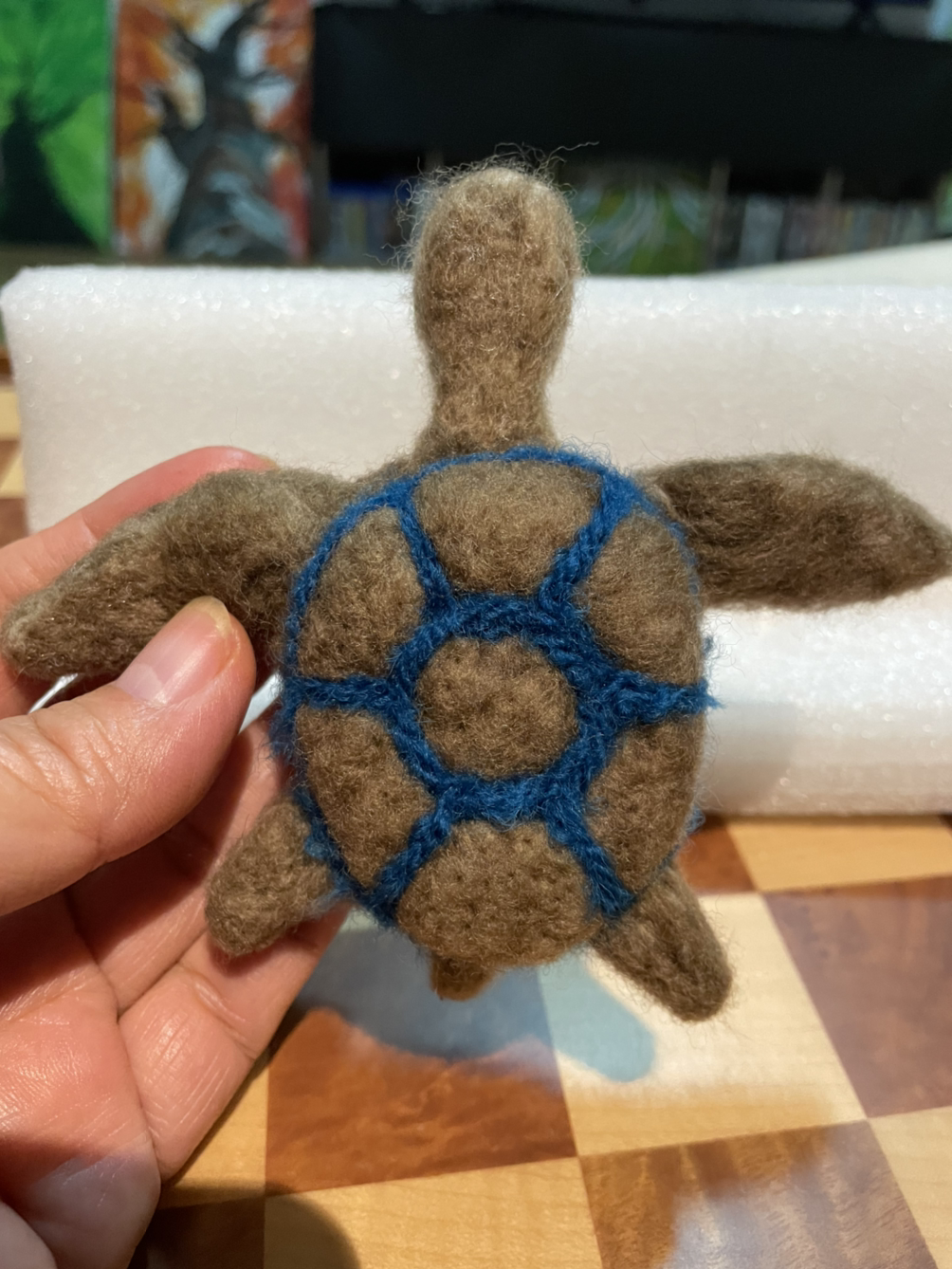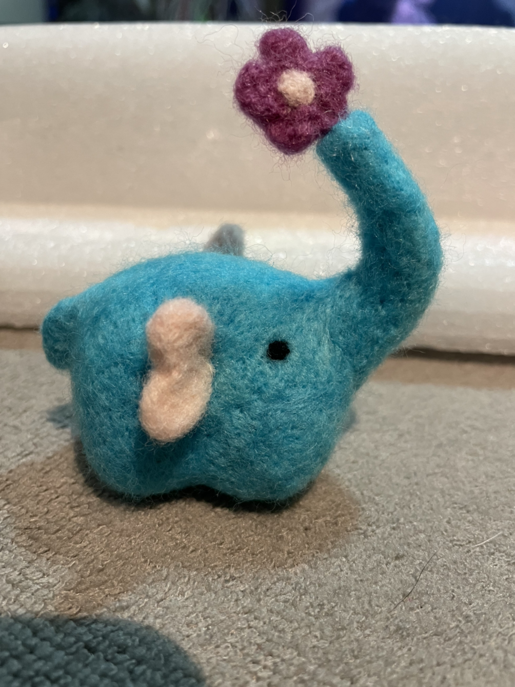 바늘 펠팅은 바늘로 찌르면 찌를수록 펠팅 되어 단단해지며 모양이 나오는 방법이기에 바늘을 들고 있지 않는 손가락이 바늘에 많이 찔려 상처를 입는다. 왼손에 모형을 들고 요리조리 돌려가며 모양을 잡고 균형을 맞추며 바늘로 찌르다 보니 모형을 들고 있는 왼손가락은 수차례 바늘에 찔렸고 이거 하나 만들면서 바늘은 무려 5개나 부러뜨렸다. 직각으로 바늘을 바로 세워 찌르면 잘 부러지지 않지만 모양을 잡고 선을 맞추느라 사선으로 바늘을 이용하다 보면 바늘이 너무 쉽게 부러진다는 것을 깨달았다. 어쩜 왕초보라서 더 많은 바늘을 부러뜨렸을 수도 있다. 어쨌든 나는 다음날 바늘을 넉넉히 다시 구입해야 했다.