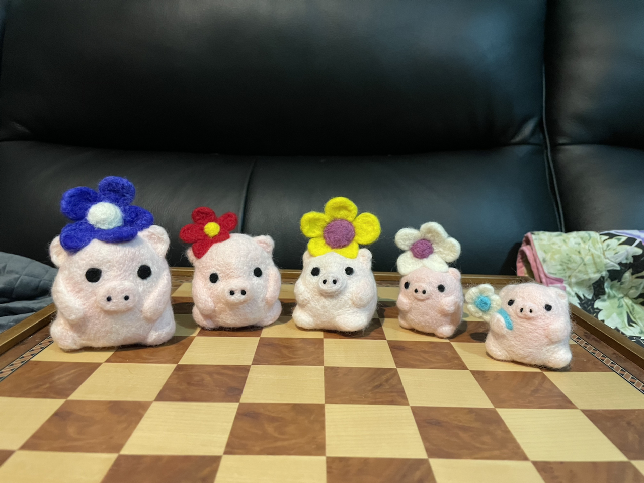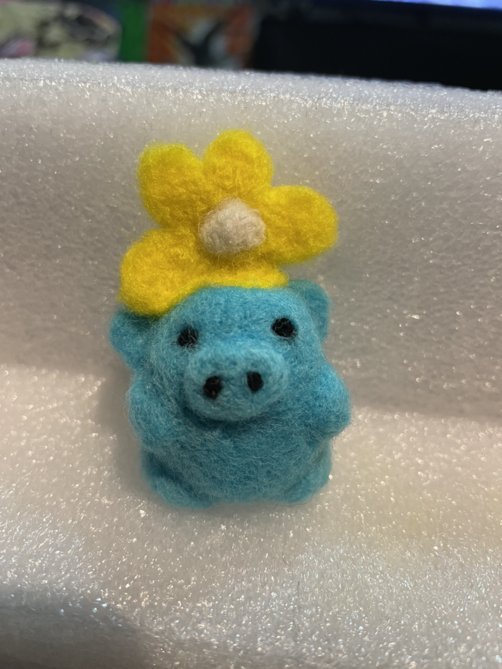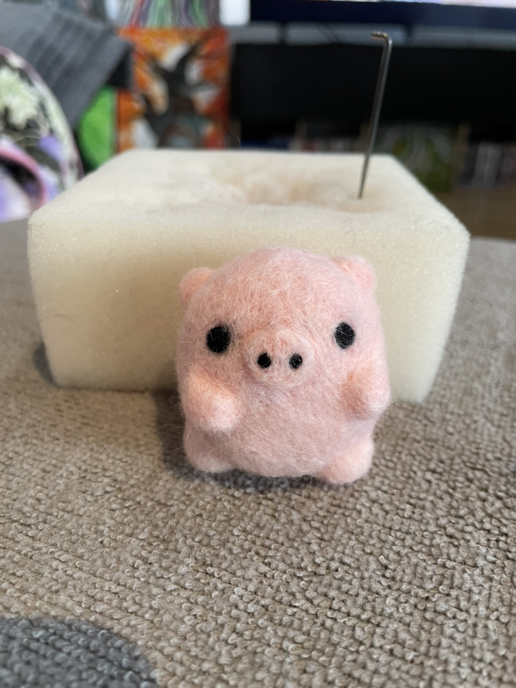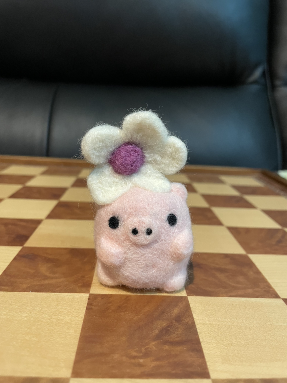이렇게 바늘 펠팅은 한번 해보니 또 다른 재미가 있었다. 저녁 먹고 잠자기 전까지 편히 쉬는 시간에 바늘 펠팅으로 작은 인형을 하나씩 만들면 좋겠다는 생각을 하며 거북이를 만들었고 다음날에는 핑크 돼지도 한 마리 만들고는 살짝 부족해 꽃 하나 만들어 머리에 올려주었다. 그렇게 핑크 돼지를 한 마리 만들어보니 귀여움에 기분도 좋아졌다.