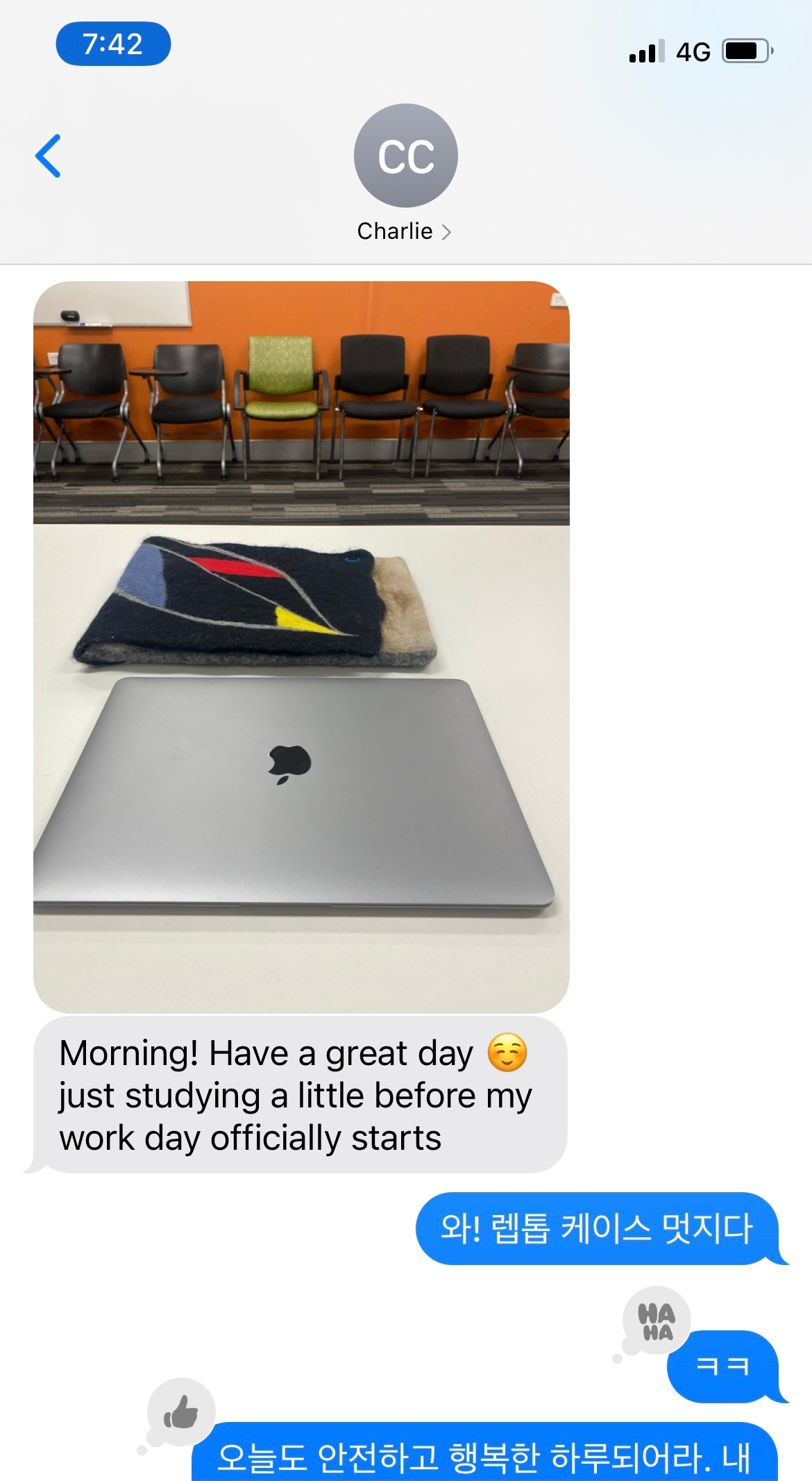 크리스마스 선물로 주려고 했지만 참을성이 부족한지 나는 완성하고는 바로 아들에게 주었다. 아들은 너무 기뻐하며 좋아했고 그 후 아들은 종종 사진과 문자를 보내오며 케이스가 정말 마음에 든다는 것을 보여주었다. 케이스를 본 아들 동료들은 모두가 멋지고 특별하다고 한 마디씩 한다며 아들은 맞춤형 주문받으면 만들어 줄 수도 있냐고 무심히 또 물어왔다. 이번에 나는 그냥 웃어넘기며 대답하지 않았다.