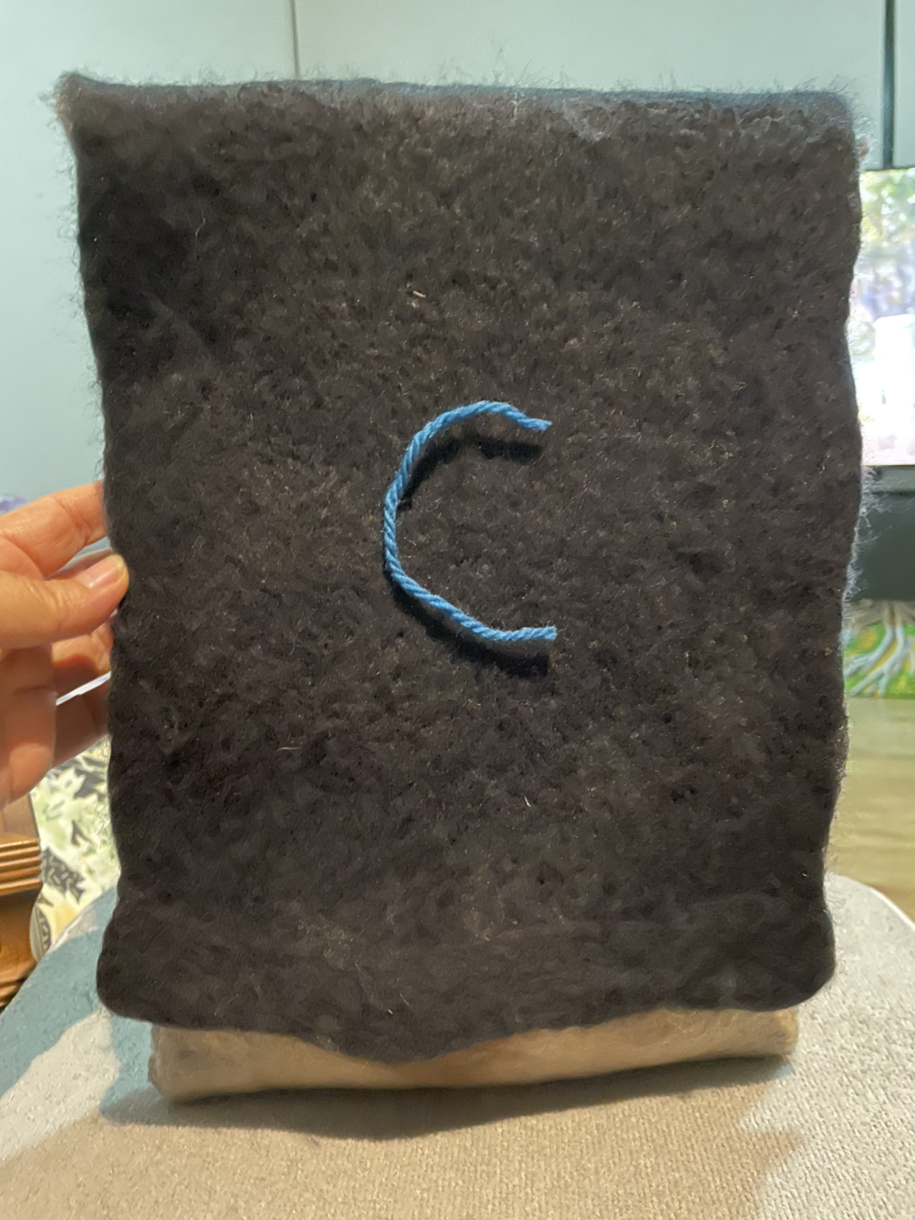 하지만 이번에는 어떻게든 내가 가지고 있는 양털만을 이용해서 끝을 내고 싶었다. 그래서 며칠 내내 아침에 시작해서 잠잘 때까지 노트북 케이스 바늘 펠팅에만 집중해 그림을 넣었고 마지막 끝을 내는 마음으로 아들 이름 이니셜 하나를 양털실을 잘라서 새겨 넣었다.
