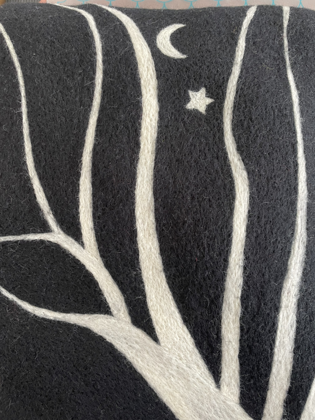 이틀 동안 열심히 한 보람으로 꽤 선명하게 그림들이 드러났고 계속 니들 펠팅을 해서 디테일하고 단단하게 굳혔다. 그렇게 2주 동안 40시간 넘게 투자해서 또 노트북 케이스를 만들어 냈다.