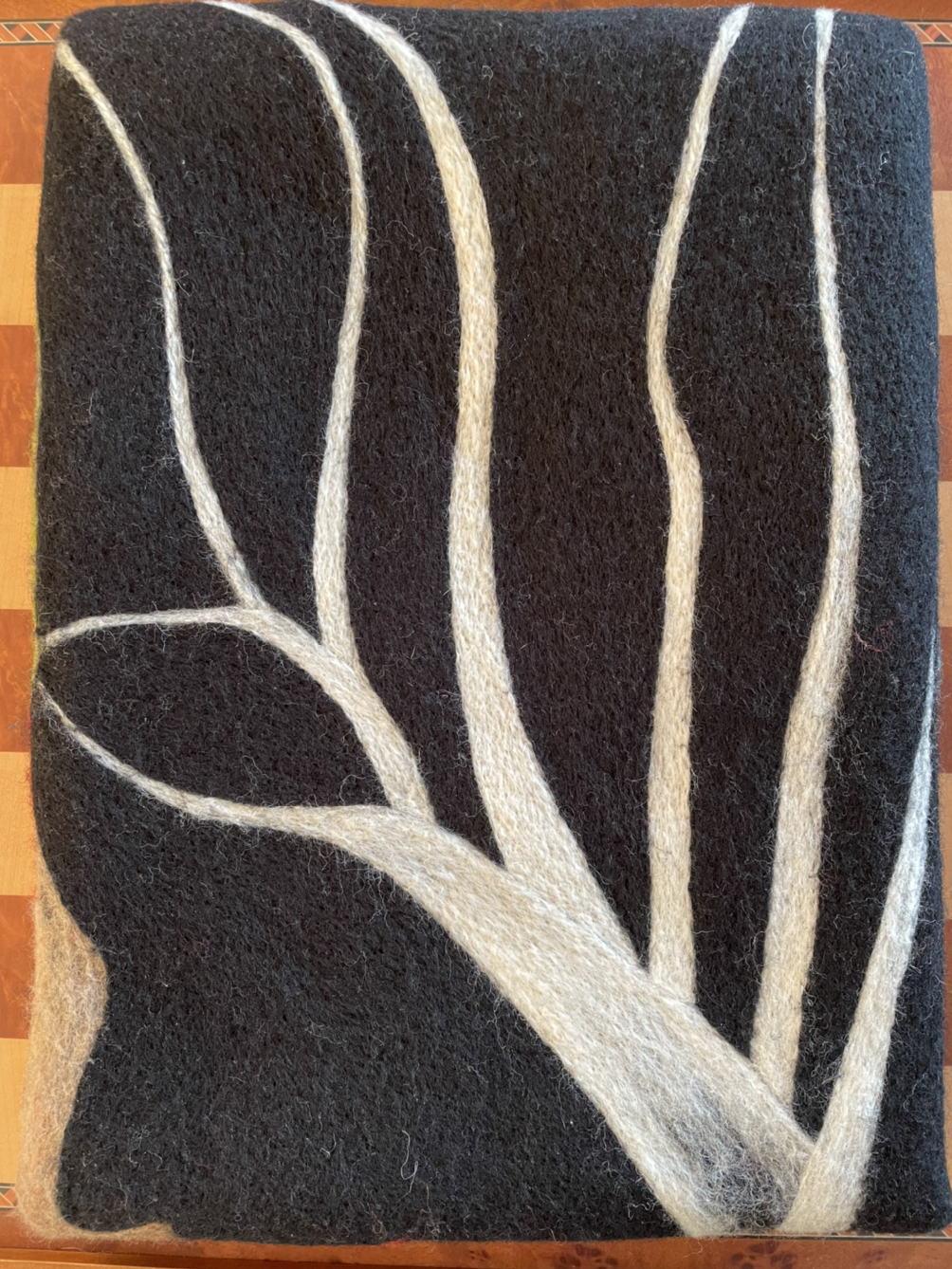 이렇게 오랫동안 니들 펠팅을 하고 나면 나의 손가락이 불쌍해진다. 수차례 바늘에 찔린 상처로 얼얼하게 아파서 아픔이 가라앉도록 당분간 펠팅은 쉬어야 한다. 쉬면서 나는 다음 도전할 작품을 계속 생각하게 된다. 손가락이 가라앉으면 또다시 노트북 케이스에 도전해 볼 생각이다. 그때는 바늘 펠팅을 전혀 하지 않고 온전히 웻 펠팅으로만 나의 그림을 장식해서 만들어 볼 생각이다. 세심하게 그림을 그대로 장식해 넣고 웻펠팅을 하면 어떻게 나올지, 성공적으로 그림이, 디자인이 그대로 나올지, 시간은 또 얼마나 걸릴지 궁금해서 실험적으로 해 볼 생각에 설렌다. 이렇게 나는 펠팅을 쉬면서도 펠팅을 생각하니 당분간 나의 외도는 지속될 것 같다.