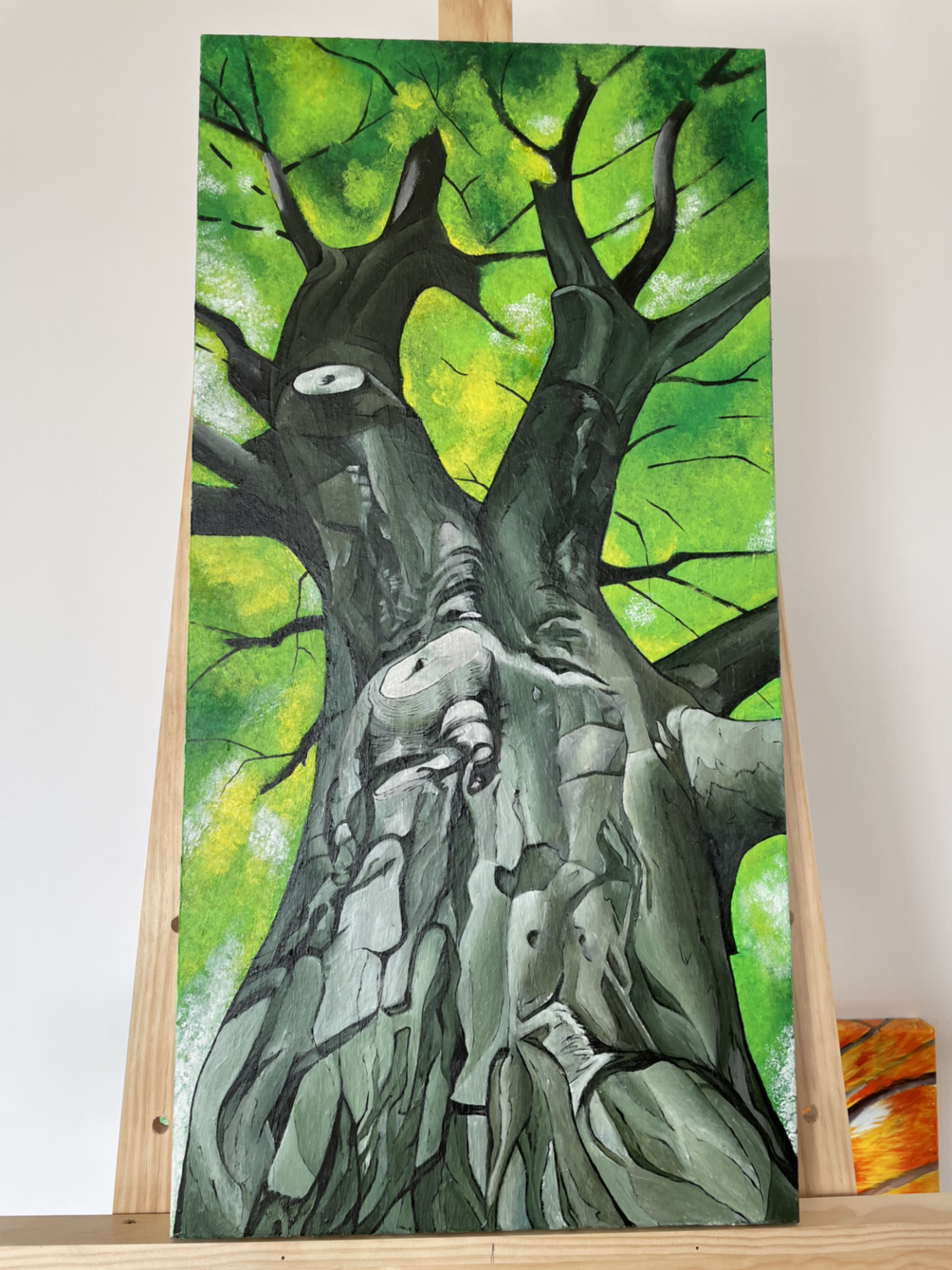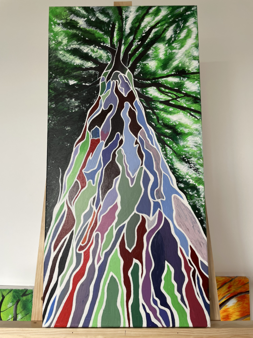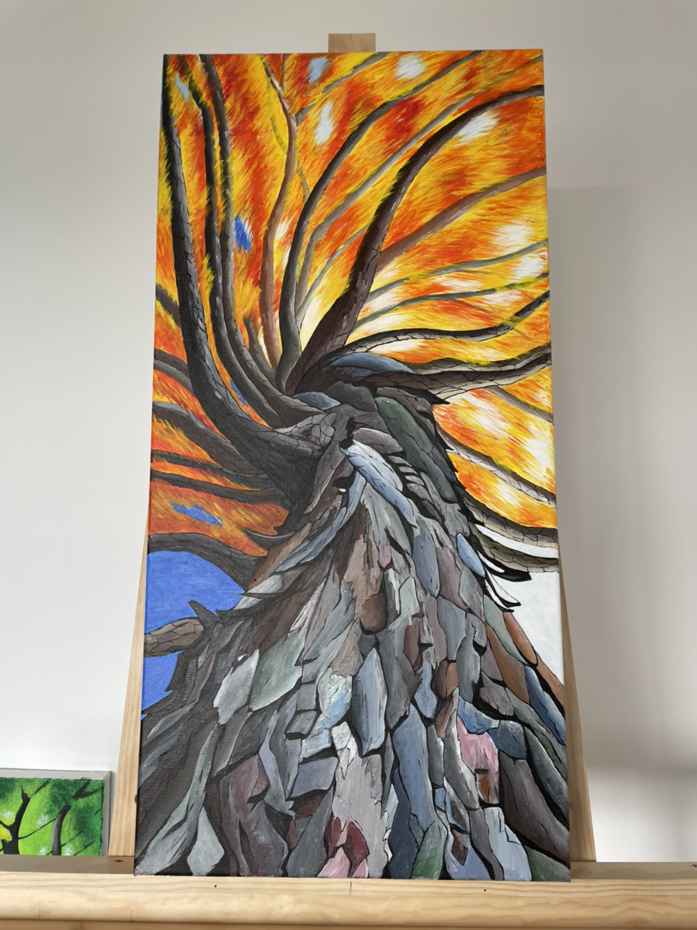 이렇게 나무를 보고 느낌이 느껴지면 최대한 느낌을 표현하려 노력하면서 나무를 그렸다. 그래서 나의 나무 그림은, 사실과 추상, 중간 어디쯤에 있을 것 같다.