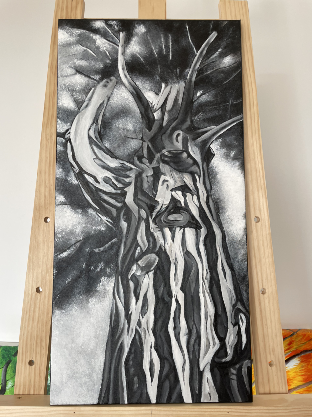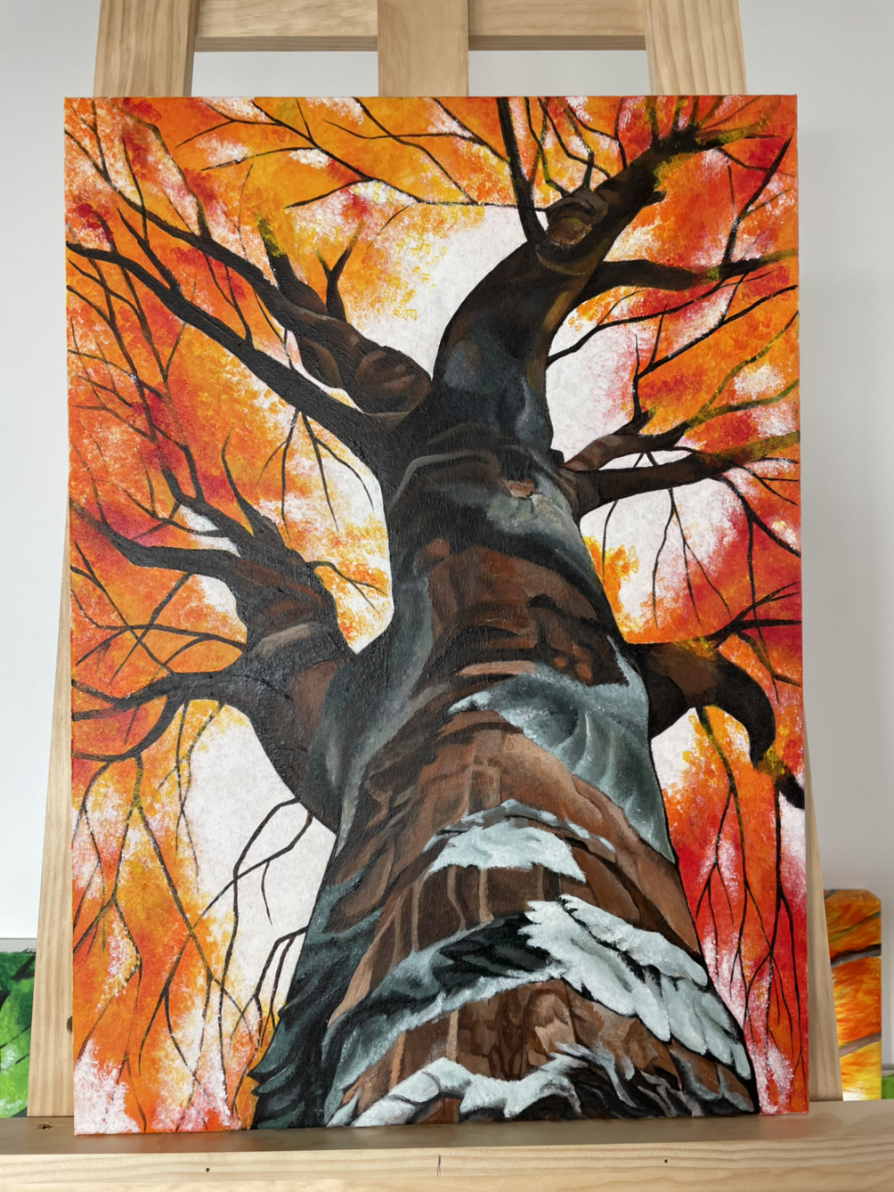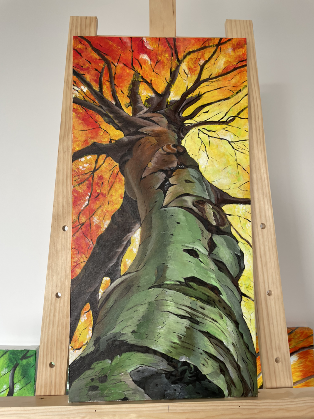 이렇게 나무를 보고 느낌이 느껴지면 최대한 느낌을 표현하려 노력하면서 나무를 그렸다. 그래서 나의 나무 그림은, 사실과 추상, 중간 어디쯤에 있을 것 같다.