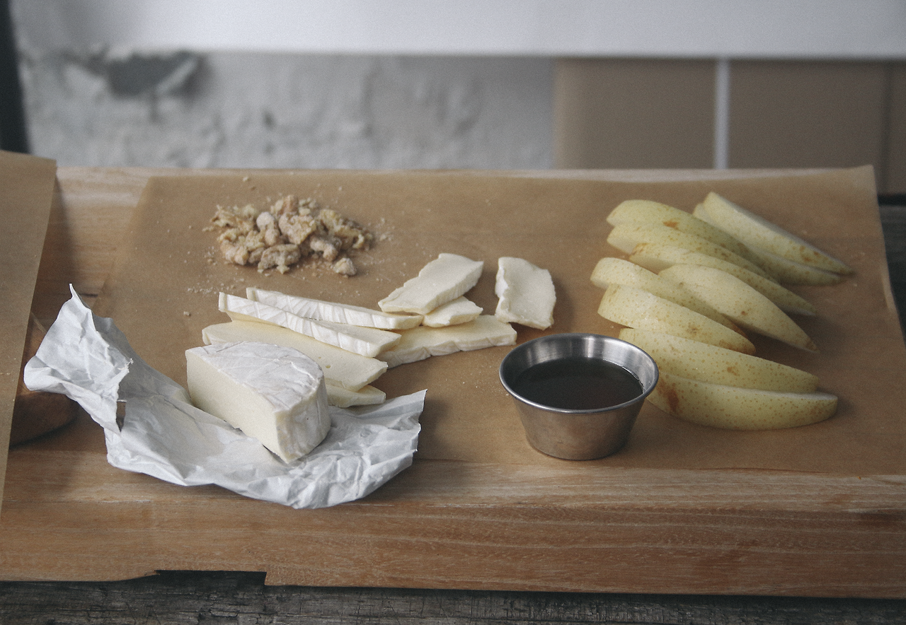 제철의 배를 가지고 만드는 가장 쉬운 애피타이저. 시원한 물이 가득한 배는 우유 맛이 많이 나는 연성 치즈(카망베르, 브리 등 부드러운 치즈들)와 호두, 그리고 생강시럽 모두와 궁합이 좋다. 함께 바게트에 올려 모양을 잡아주면 고급 와인 안주로도 탁월하다.