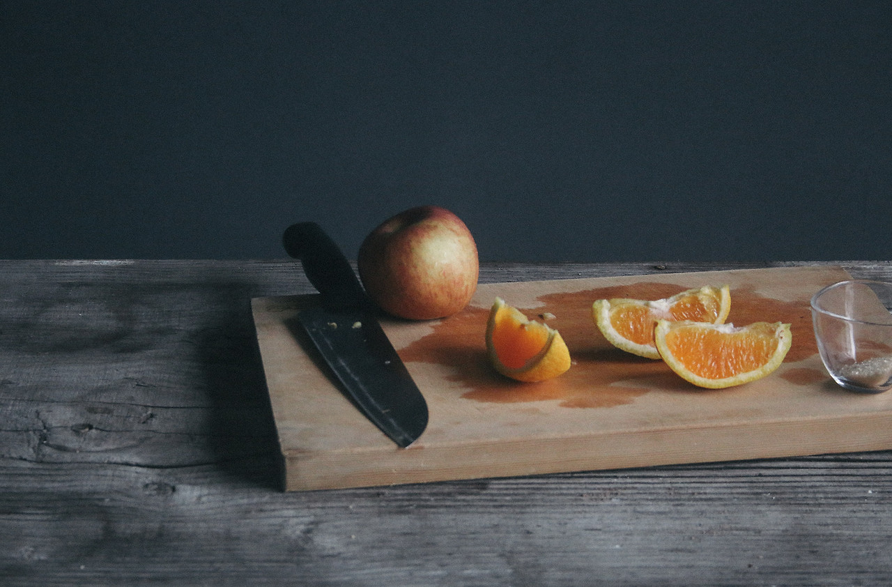 1. 껍질까지 깨끗이 씻은 사과와 오렌지는 4 등분해서 슬로우 쿠커에 넣는다.
