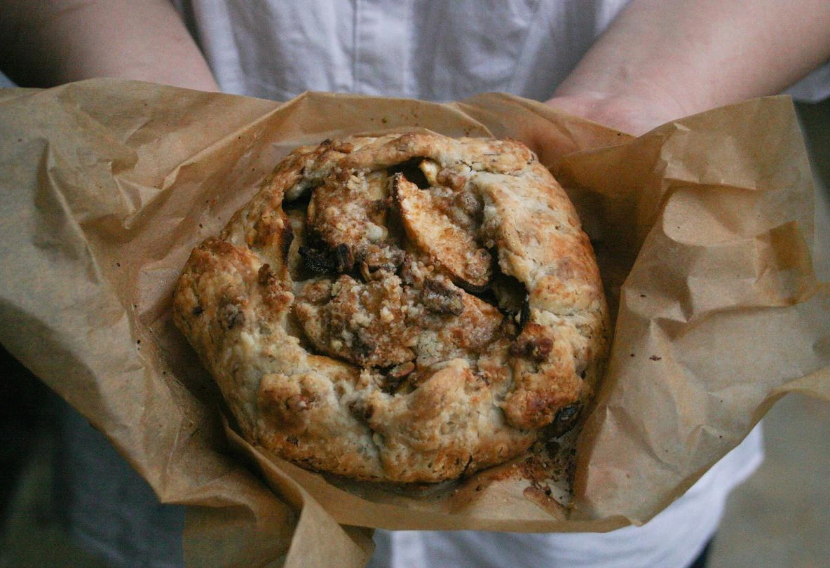 사과가 듬뿍 들어간 애플파이를 직접 구워보는 것은 오랜 로망 중 하나였다. 갈레트는 프랑스 농부들이 과일을 쉽게 먹기 좋게 만든 투박한 농원식 파이를 말한다. 일반적으로 타르트로 대표되는 프랑스식 파이가 바탕이 되는 반죽을 만들어 한 번 구워내고, 그 위에 필링을 채워 다시 두 번 구워 완성하는 것이라면, 갈레트는 바탕이 되는 반죽 위에 바로 필링을 올리고 가상사리를 투박하게 접어 한 번 구워내면 끝이다. 갓 구워 따뜻하게 먹어도, 하루 식혀 차갑게 먹어도 맛이 좋다.