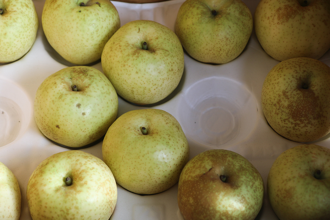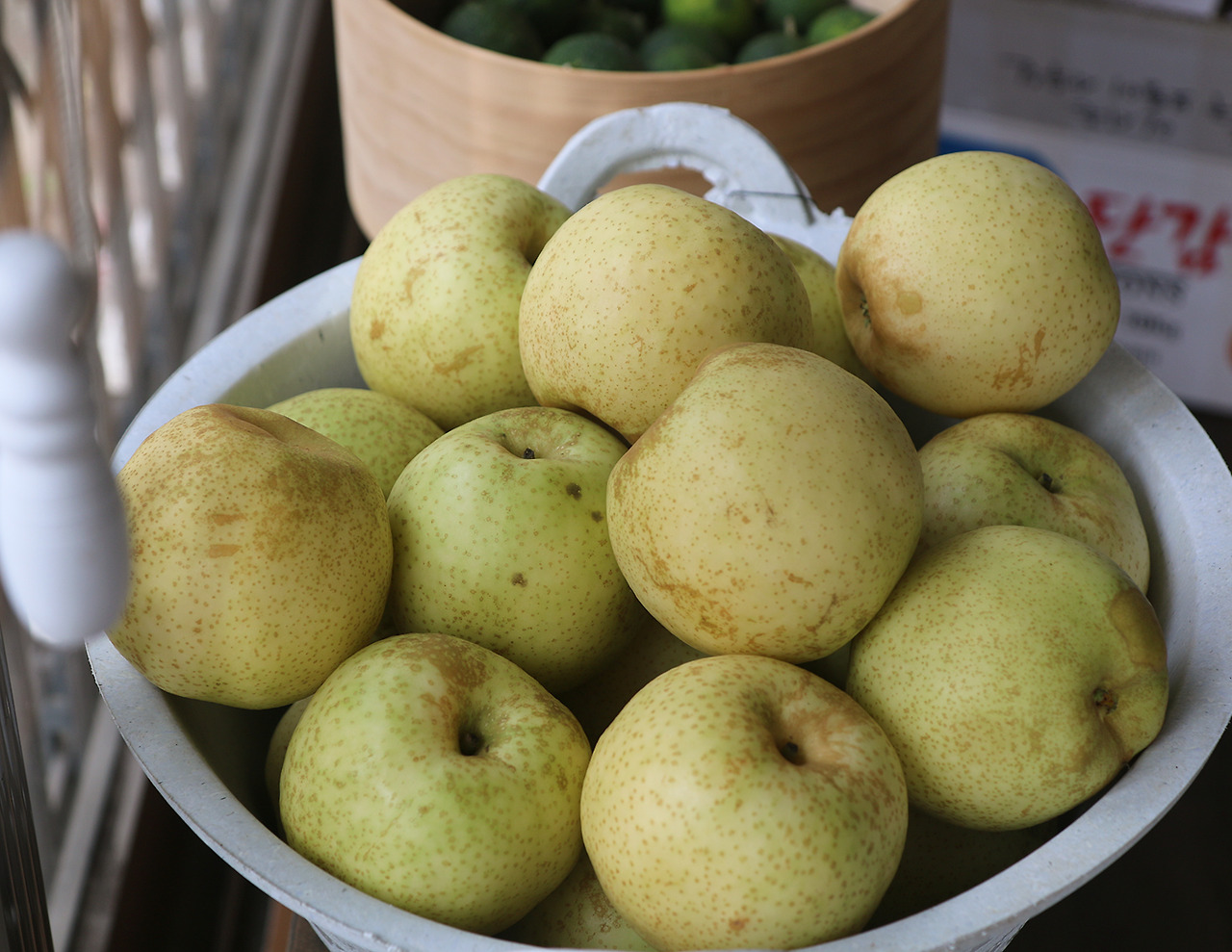 그런데 이 '황금배'를 아는 사람은 많지 않다. 유난히 배의 껍질 빛깔이 옅다 못해 푸르고, 크기도 일반 배보다 작은 것이 특징. 언젠가부터 차례상의 제수로 오르는 과일의 대표가 되다 보니 유독 배는 크기로 값을 매겨왔고, 상대적으로 작은 배는 가치가 떨어져 시장에서 찾아보기 어렵게 되었다.