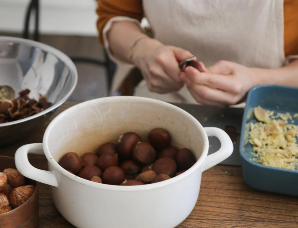 한 때 우리에게도 밤으로 만드는 다양한 수제 가공품이 유행하던 시절이 있었다. 영화 리틀 포레스트가 개봉하고는 한 동안 보늬밤, 일본식 밤 조림이 인기를 끌었다. 특히 몸에 좋다는 율피를 채로 먹을 수 다는 말에 혹해, 겉껍질을 벗기는 길고도 먼 여정을 시작하곤했다.