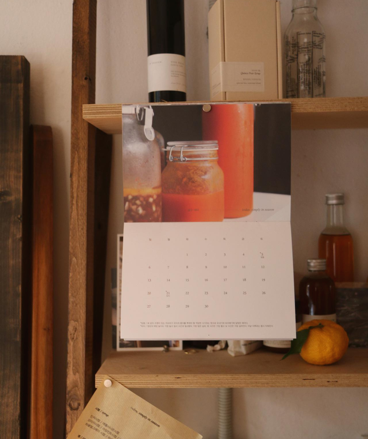 우리의 달력에는 지난 한 해의 기록이 겹쳐진다. 지난 한 해의 시간들을 돌아보며 가장 인상 깊었던 재료나 음식 또는 활동을 사진으로 골라 넣기 때문이다. 작년 달력을 만들 때까지만 해도 큰 주저함 없이 사진들을 골랐다. 지난 3월엔 우리가 무엇을 만들었을까. 이 계절엔 무얼 먹으면 좋을까 같은 일반적인 기준으로 계절감이 잘 드러난 과거의 사진들을 고르고 미래의 날짜들을 입혀 인쇄를 넣었다. 유일한 걱정이 있다면, 인쇄가 너무 어두워 사진의 색감이 망가지지 않을까 정도. 그런데 올 해는 마음이 복잡했다. 솔직히 지난 한 해의 시간들을 돌아보는 것이 쉽지 않았기 때문이다. 마찬가지로 새로 다가올 한 해를 예상해 보는 것도 조심스러운 일이었다.