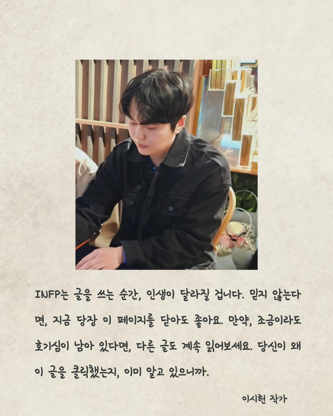 INFP는 글을 쓰는 순간, 인생이 달라질 겁니다. 믿지 않는다면, 지금 당장 이 페이지를 닫아도 좋아요. 만약, 조금이라도 호기심이 남아 있다면, 다른 글도 계속 읽어보세요. 당신이 왜 이 글을 클릭했는지, 이미 알고 있으니까.