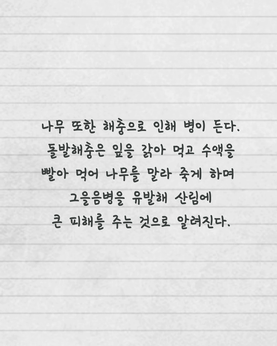 병든 나무는 겉으로 보기에는 알아차리기 힘들다. 그렇기에 나무 의사의 관심이 중요하고, 조치가 늦어지면 심할 경우 고사할 가능성이 있다. 사람도 마찬가지다. 현재 하는 일이 지금 당장은 힘들고 지루해도, 큰 자산이 될 수 있음을 잊지 말아야 한다. 배움이 있다면, 영양분처럼 내 몸에 뻗어나갈 것이다.