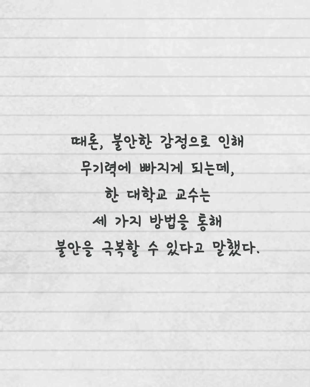 때론, 불안한 감정으로 인해 무기력에 빠지게 되는데, 한 대학교 교수는 세 가지 방법을 통해 불안을 극복할 수 있다고 말했다.
