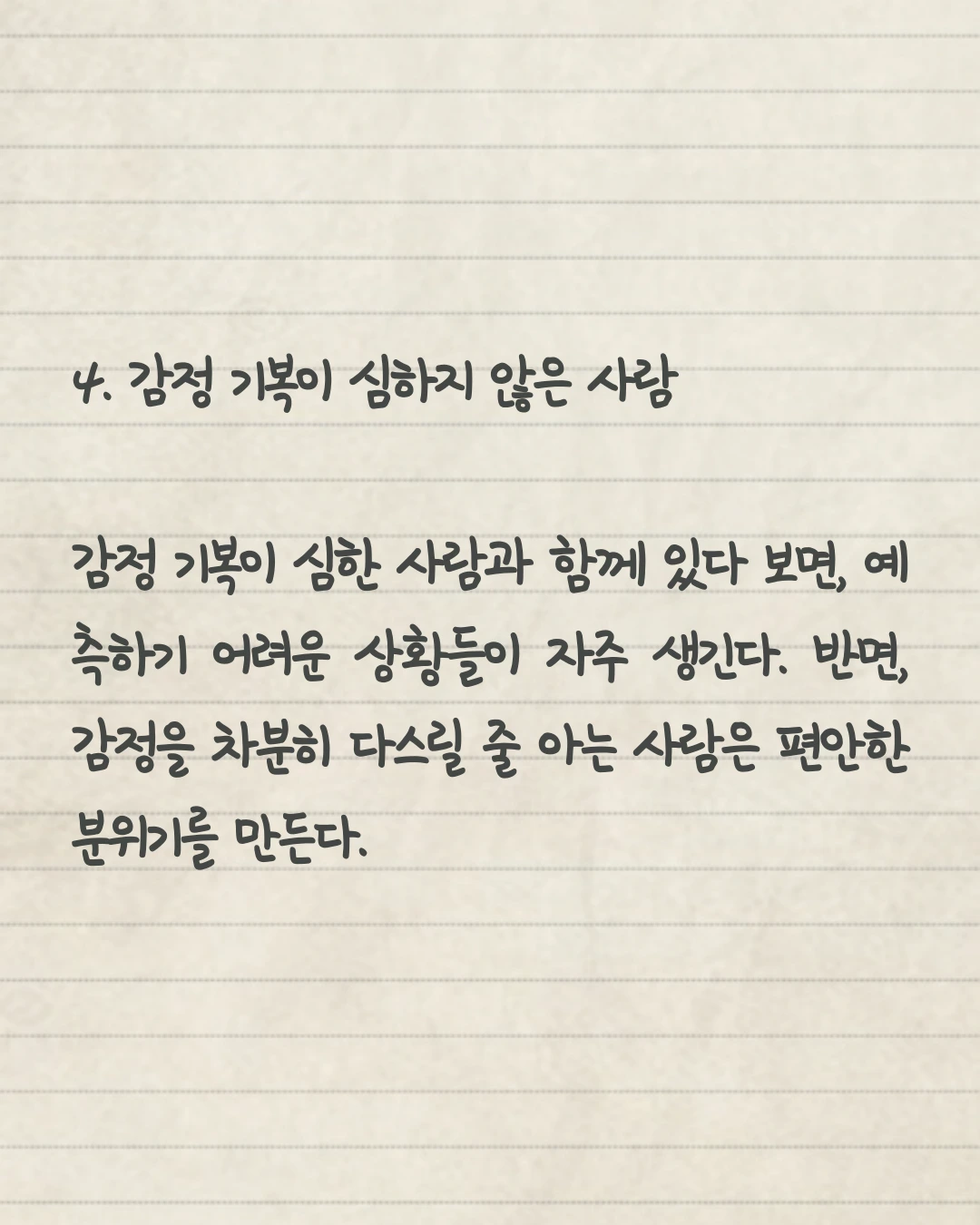 4. 감정 기복이 심하지 않은 사람