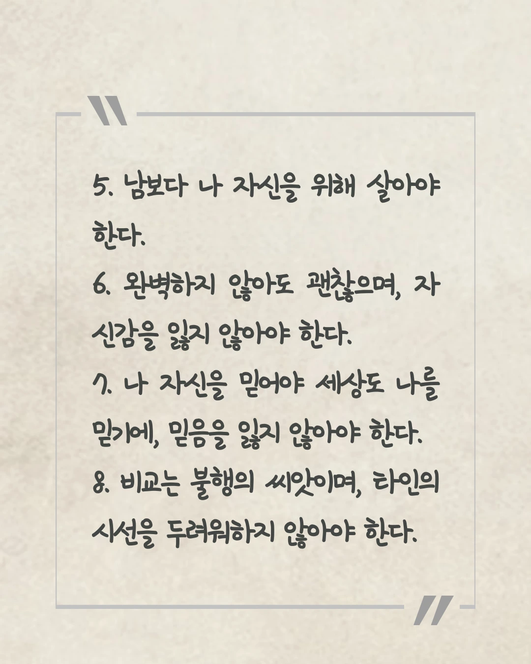 8. 비교는 불행의 씨앗이며, 타인의 시선을 두려워하지 않아야 한다.