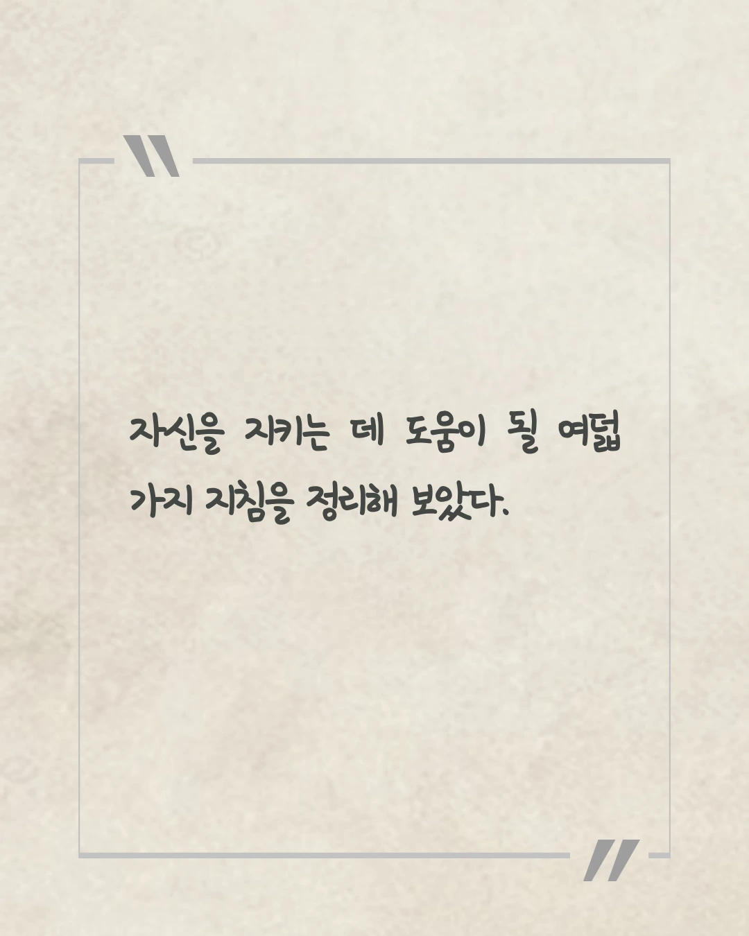 남의 눈치를 보며 살아간다면 결국 자기 자신을 잃어버리게 될 뿐이다. 타인의 시선으로부터 자유로워질 수는 없을까? 자신을 지키는 데 도움이 될 여덟 가지 지침을 정리해 보았다.