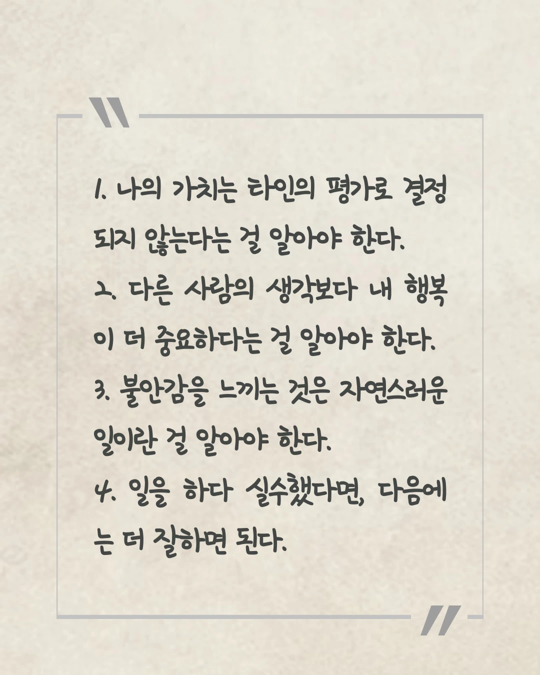 1. 나의 가치는 타인의 평가로 결정되지 않는다는 걸 알아야 한다.