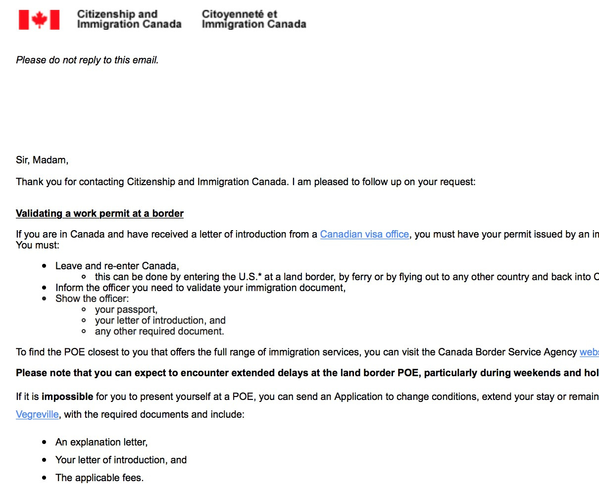 그래서 영어를 조금 하는 친구에게 부탁해 캐나다 대사관에 전화와 이메일로 질문했다. 며칠이 걸려 메일 답장이 왔고 답장 내용은 관광비자로 들어와서 워킹비자로 바꿔도 전혀 상관이 없다는 메일이었다. 그 메일을 확인 후 난 당장 다음날 캐나다로 떠났다. 진작에 내가 알아봤다면 비행기 표도 날리지 않고 많은 돈을 아낄 수 있었을 것이다. 사실 유학원 탓으로 돌리기 싫지만, 확실한 정보가 아니라면 적어도 “한 번 알아보겠다, 그건 학생분이 직접 알아봐야 한다” 라는 한마디만 했으면 뉴욕에서 생활비, 비행기 값을 날리진 않았을 것이다.