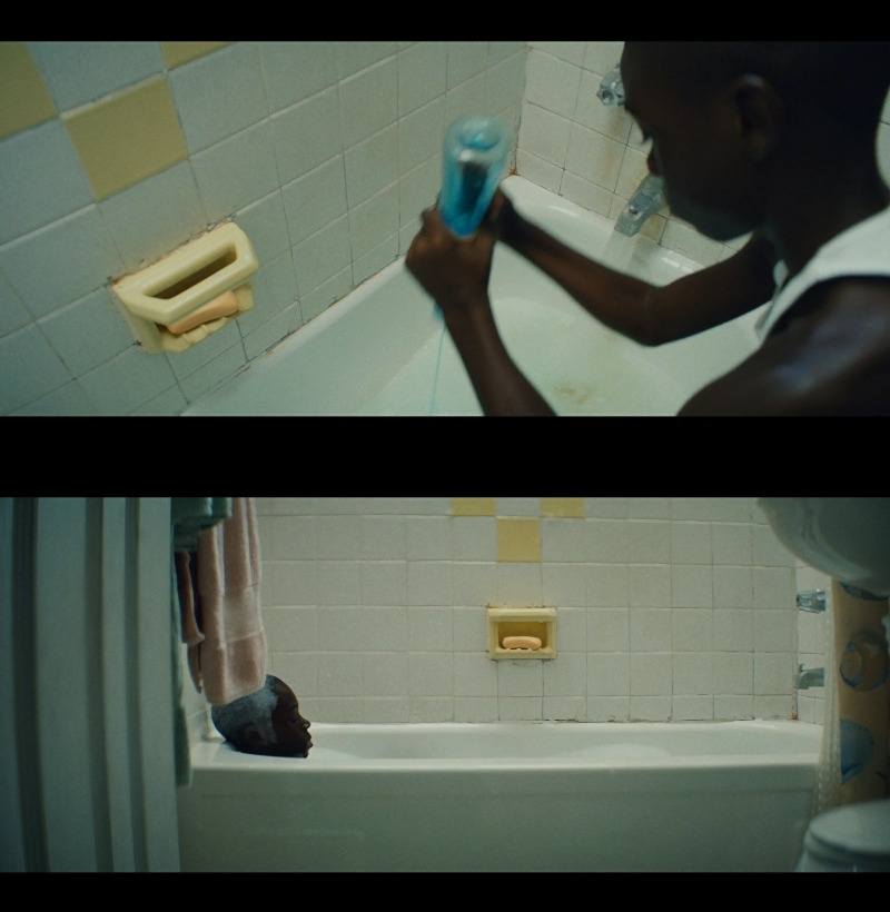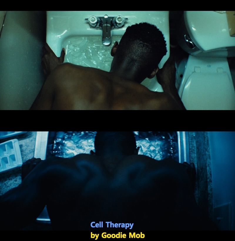 학교에서의 괴롭힘은 그 정도를 더해가고, 엄마의 마약중독 때문에 샤이론은 곤욕을 치른다. 이 장면에서 후안의 죽음이라는 정보가 제공되고 샤이론에게 빛을 선사하는 보금자리 같은 역할이 사라졌음을 뜻한다.