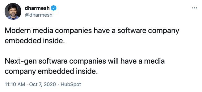 SaaS/B2B 회사들이 미디어 회사들을 인수하는 케이스가 무척 많아졌다. Hubspot 코 파운더는 이미 2020년도부터 꿰뚫고 있었고. 인사이트 풍부한 다른 케이스들도 다룰 예정이니 재밌게 읽었으면 좋겠다.