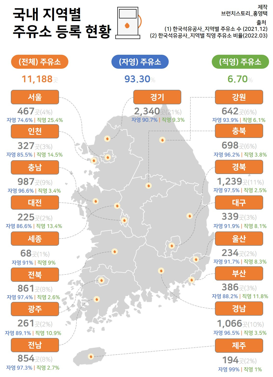 국내_지역별 주유소 등록 현황(한국석유공사), 이미지 제작 : 홍영택