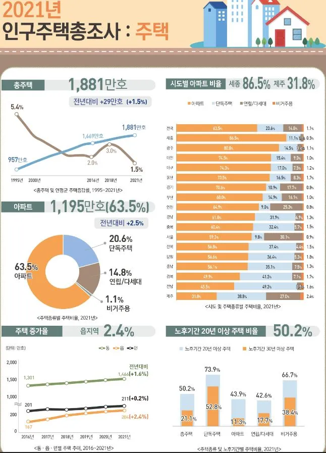 인구주택총조사를 보면 지역별로 단독주택의 비율을 알 수 있고 총주택 수를 통해 수치화시키면 지역별 단독주택의 숫자를 알 수 있습니다. 시군별로 주택양상이 달라지겠지만 단독주택이 대다수 위치한 곳의 주유소의 이용률은 점차 감소할 것입니다.