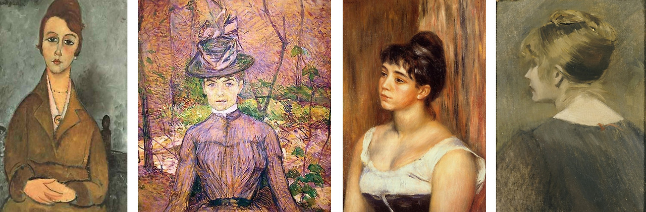 뭐 좀 심술궂게 굴었던 것을 인정한다. 그러나 글을 읽어보면 그럴 수밖에 없다는 것을 이해할 것이다. 이 네 점의 그림은 모두 한 명의 모델을 그린 것이다. 첫 번째 작품은 내 어린 시절 우상이었던 모딜리아니가 그렸고, 두 번째 작품은 비운의 천재인 툴루즈 로트렉이, 세 번째 작품은 한국에서 얼마나 유명한지 구두의 브랜드 네임으로까지 알려진 르누아르, 마지막 작품은 우리에게 조금 낯선 화가 장 외젠 클라리가 그렸다.