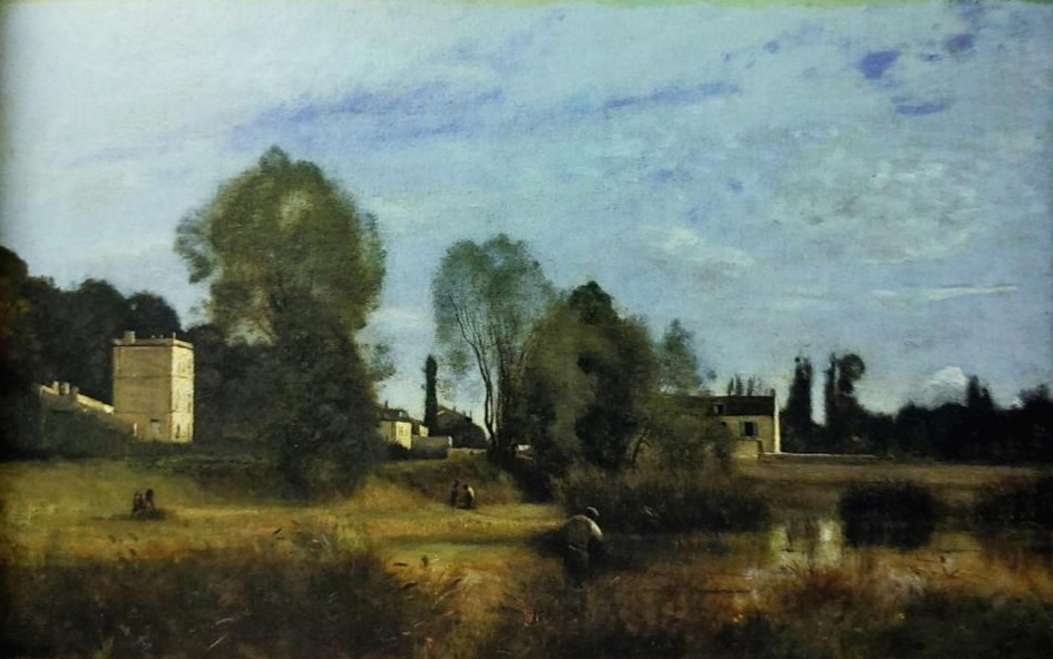 코로는 부모님이 살았던 빌 다브레에 자주 내려가 그곳의 풍경을 많이 그렸다. 거친 덤불 뒤에 서서 그 앞으로 펼쳐진 호수를 바라보니 몇몇의 농부들이 묵묵히 제 할 일들을 하고 있고, 빛을 받아 반짝이는 건물의 흰 벽이 마을의 평화로운 오후를 말해주는 듯하다. 그런 그의 그림을 보고 프랑스의 평론가 테오도르 드 방빌(Theodore de Banville)은 이렇게 말했다.