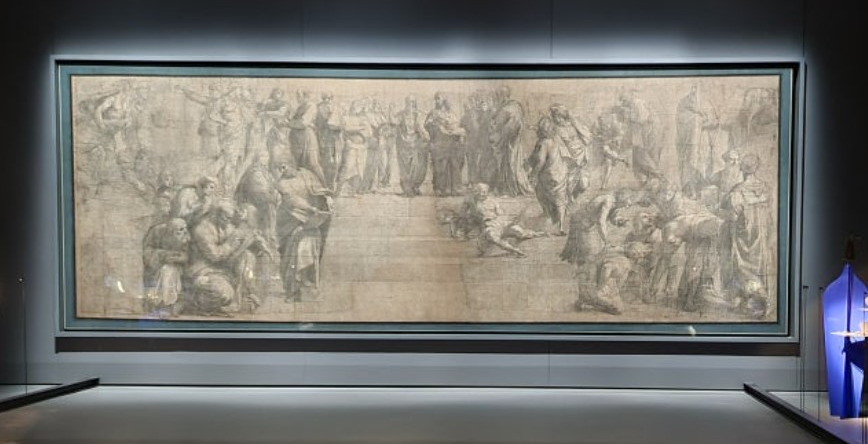 이렇게 라파엘로가 승승장구하던 시기 사도궁전의 경당인 시스티나 성당에서는 미켈란젤로가 천장화를 그리고 있었다. 어느 날 라파엘로는 비밀리에 작업하던 미켈란젤로의 천장화를 보게 되었다. 그리고 큰 영감을 받았다. 미켈란젤로의 힘 있고 드라마틱한 인물 표현에 감탄한 라파엘로는 자신의 작업에도 그런 특징을 반영하려 노력한다. 여기에 바로 라파엘로의 최대 장점이 있다. 라파엘로가 태어나기 전 많은 예술가들은 거칠고 외곩수에 광기마저 보이는 사람들로 비추어졌다. 자신의 방법만이 옳은 것이라고 믿는 예술가들 사이에서 라파엘로는 자신보다 나은 사람이라 생각하면 배척하지 않고 인정했다. 그의 장점을 받아들이고 그것을 자기의 것으로 만들어 더 좋은 결과물을 만들어냈다. 눈부신 재능을 가진 라파엘로가 또 다른 천재 두 명에게서 끊임없이 배웠으니 그 성품과 집념은 그를 완벽한 르네상스의 거장으로 만드는데 부족함이 없었을 것이다.