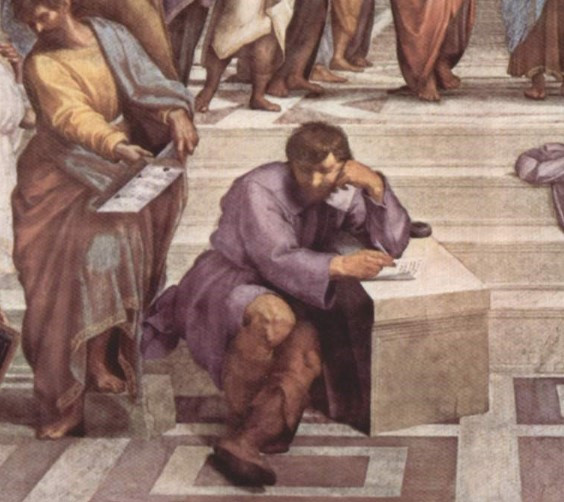 라파엘로는 아테네 학당을 그리기 전 실물 크기의 스케치를 여러 번 했다. 밀라노의 암브로시아나 미술관이 소장하고 있는 아테네학당 스케치는 서명의 방에 있는 원본과 흡사하다. 대부분의 스케치가 원본에 반영되었지만 원본에는 있지만 스케치에는 없는 인물이 있다. 원본 벽화 중앙 계단에 앉아있는 헤라클레이토스다. 다른 인물들과 달리 구도상 동떨어져 보이고 원근법도 약간 어긋나 보인다. 이 헤라클레이토스는 미켈란젤로의 얼굴을 모델로 그려졌다. 대부분의 철학자들이 함께인 반면 혼자 앉아 사색에 잠긴 모습은 미켈란젤로의 고독한 작업 스타일과 내면의 깊은 사유를 상징적으로 표현한듯하다. 라파엘로가 미켈란젤로의 천장화를 보고 난 후 그에 대한 존경을 표현하기 위해 최후에 추가되었을 것이라고 학자들은 추측한다. 아테네 학당의 중앙에 서 있는 두 명중 오른손을 들어 하늘을 가리키고 있는 인물은 천상의 이데아를 지향했던 플라톤으로 그의 얼굴은 레오나르도 다 빈치를 모델로 하고 있다.
