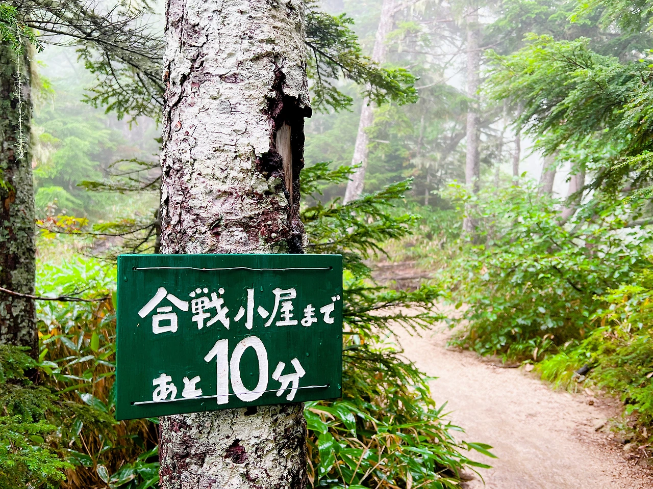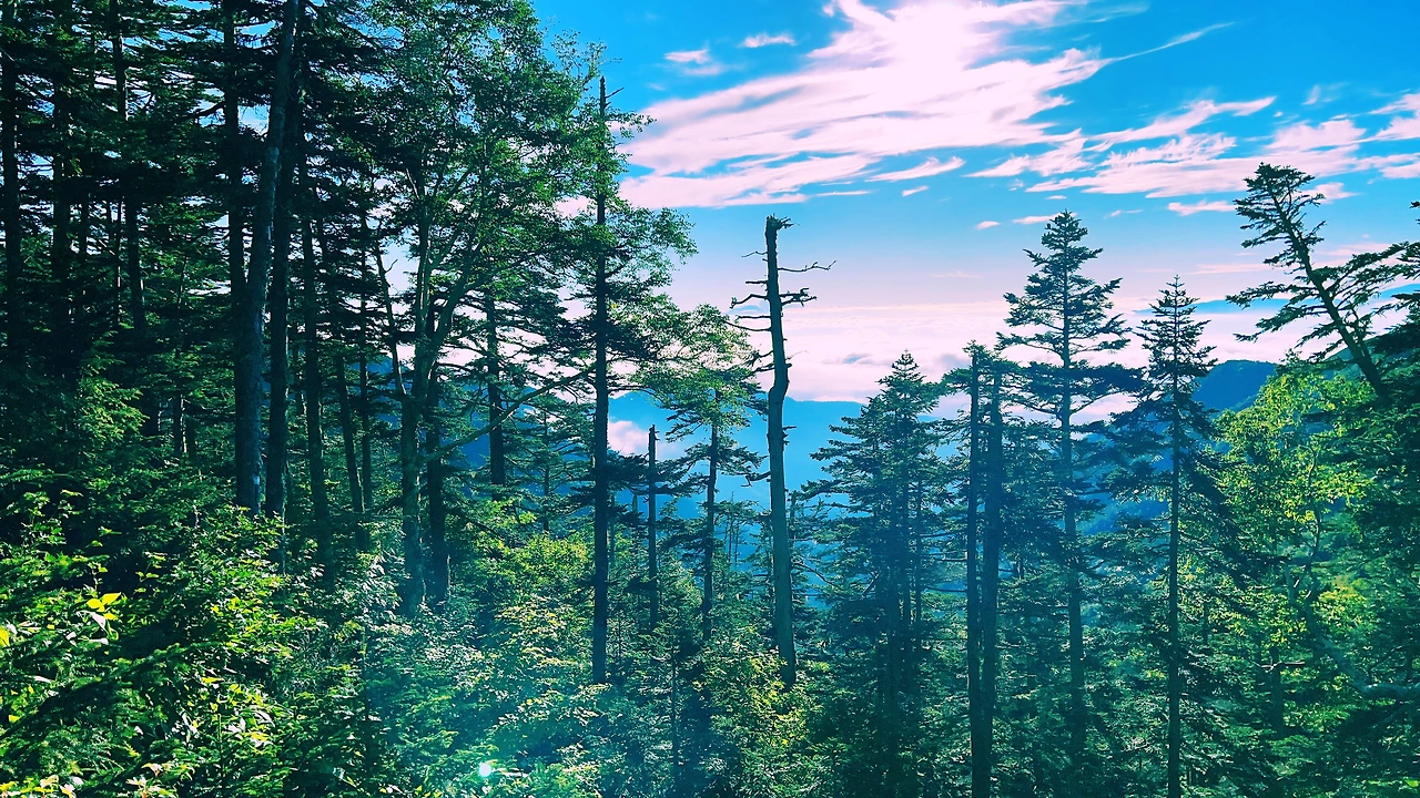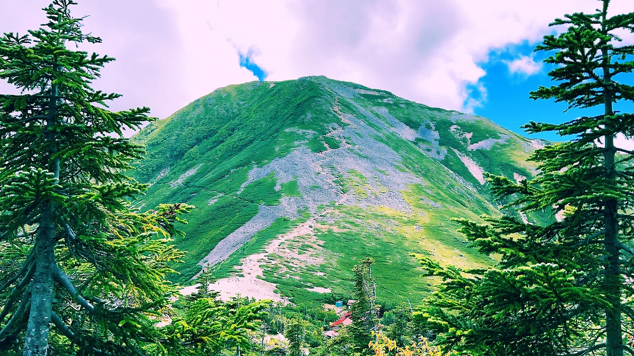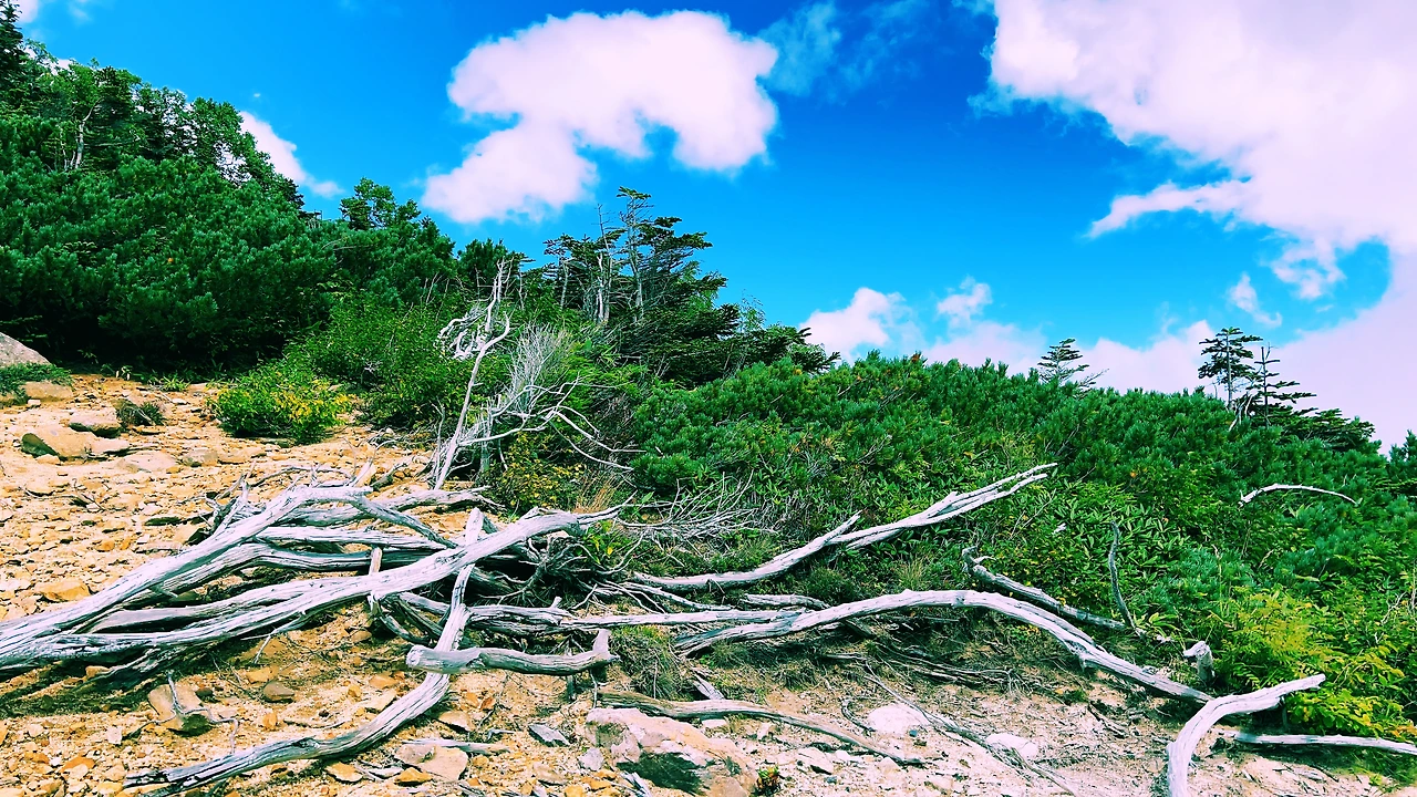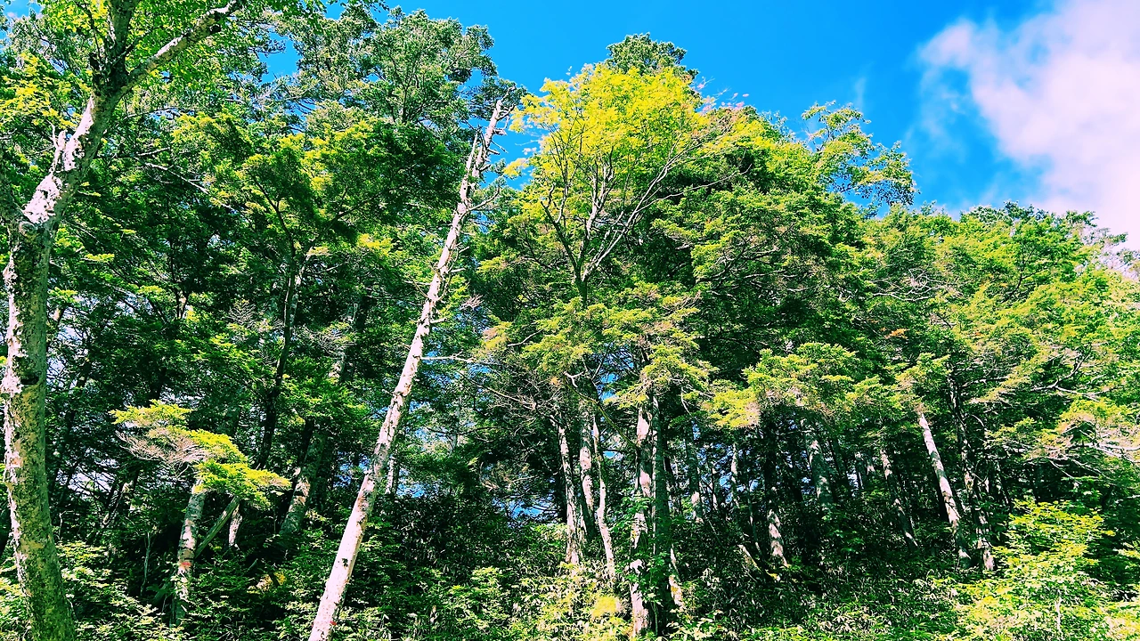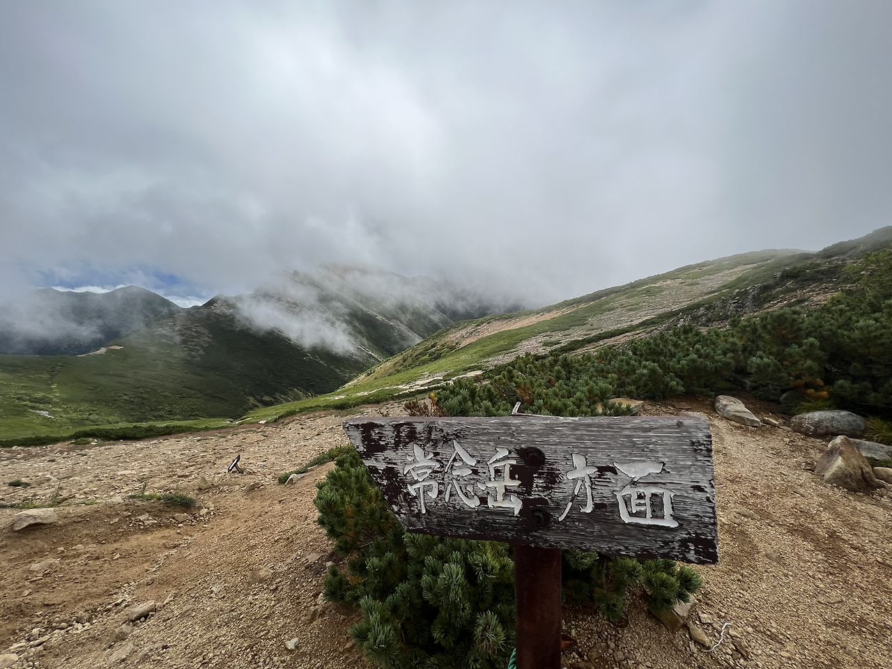 중간에 보이는 산장이 바로 조넨고야입니다. 사실 지척에 있는것 같은데 이곳에서 산장까지 약 한시간 정도 걸린듯합니다. 다만 고도가 낮아지면서 다른 식생구역이 나타나며 힐링포인트가 되어주네요.