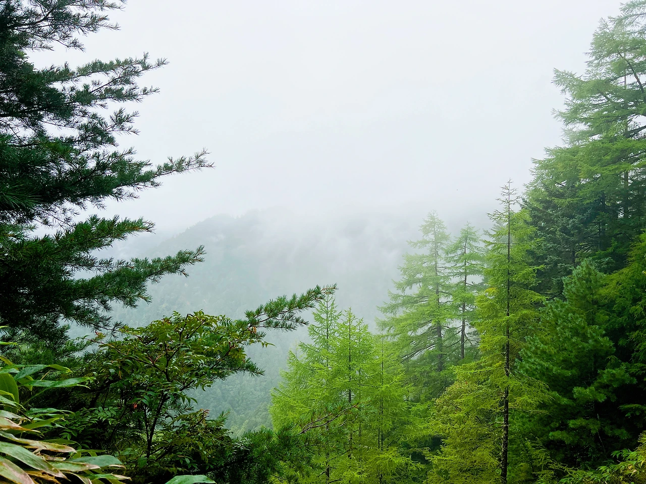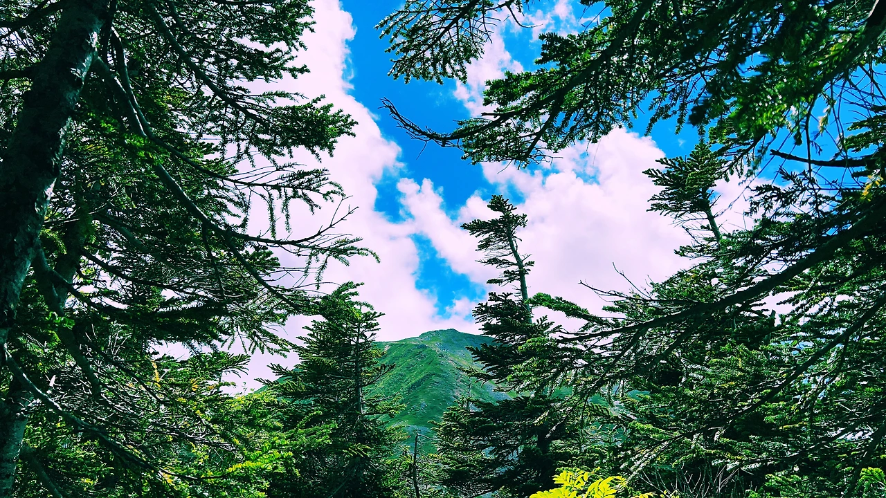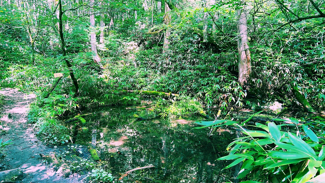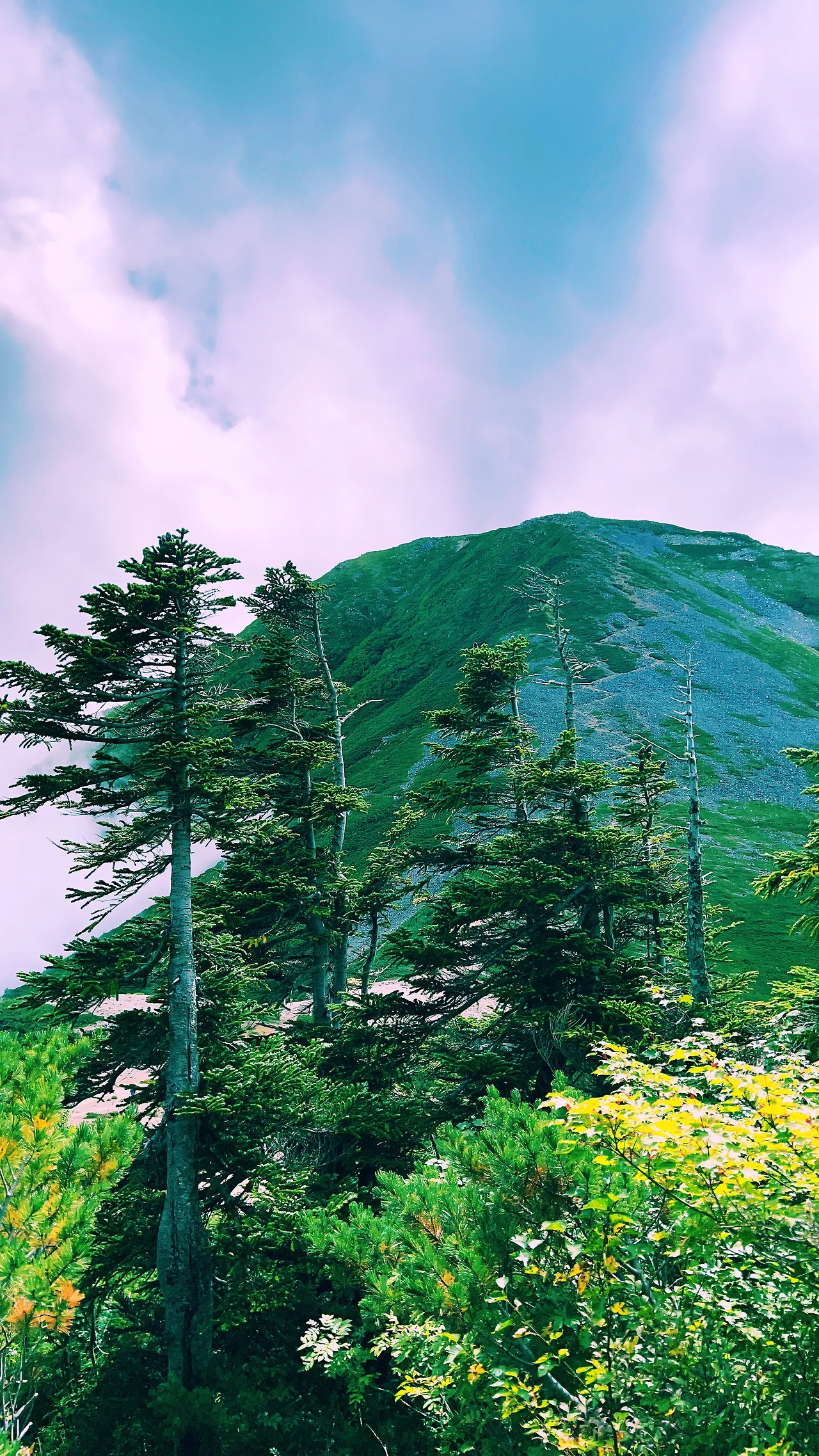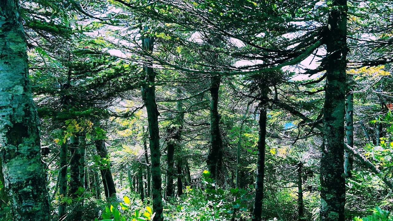 중간에 보이는 산장이 바로 조넨고야입니다. 사실 지척에 있는것 같은데 이곳에서 산장까지 약 한시간 정도 걸린듯합니다. 다만 고도가 낮아지면서 다른 식생구역이 나타나며 힐링포인트가 되어주네요.