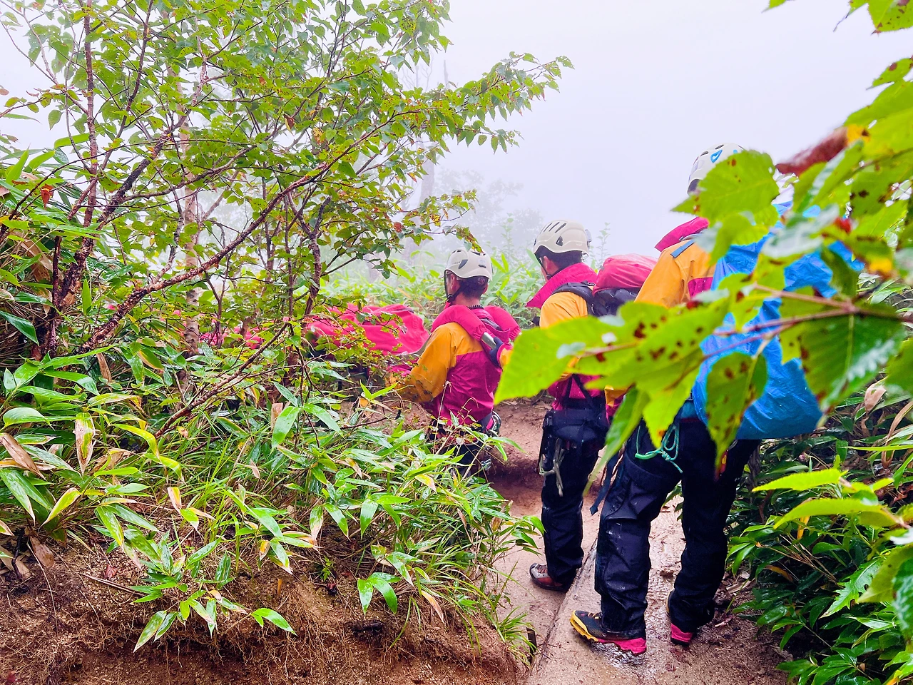 이후 빗줄기가 강해지며 약 2시간 정도면 도착가능한 정상부근 엔진소 산장까지 이동하는 코스를 카메라로 담아 보았습니다. 목요일이라 등산객이 많지 않았고 중간에 조난당해 구조대로부터 구조되는 것을 보다보니 역시 위험이 곳곳에 도사리고 있는 산이구나 라는 느낌이 들었습니다.