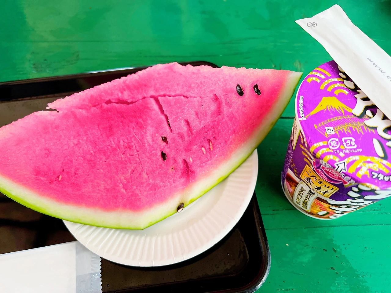갓샌고야라고 하는 중간지점까지 도착해서 컵라면과 시원한 수박을 맛보았는데 인생수박이라고 할 정도로 갈증나는 저에게는 구세주 같은 음식이었네요.