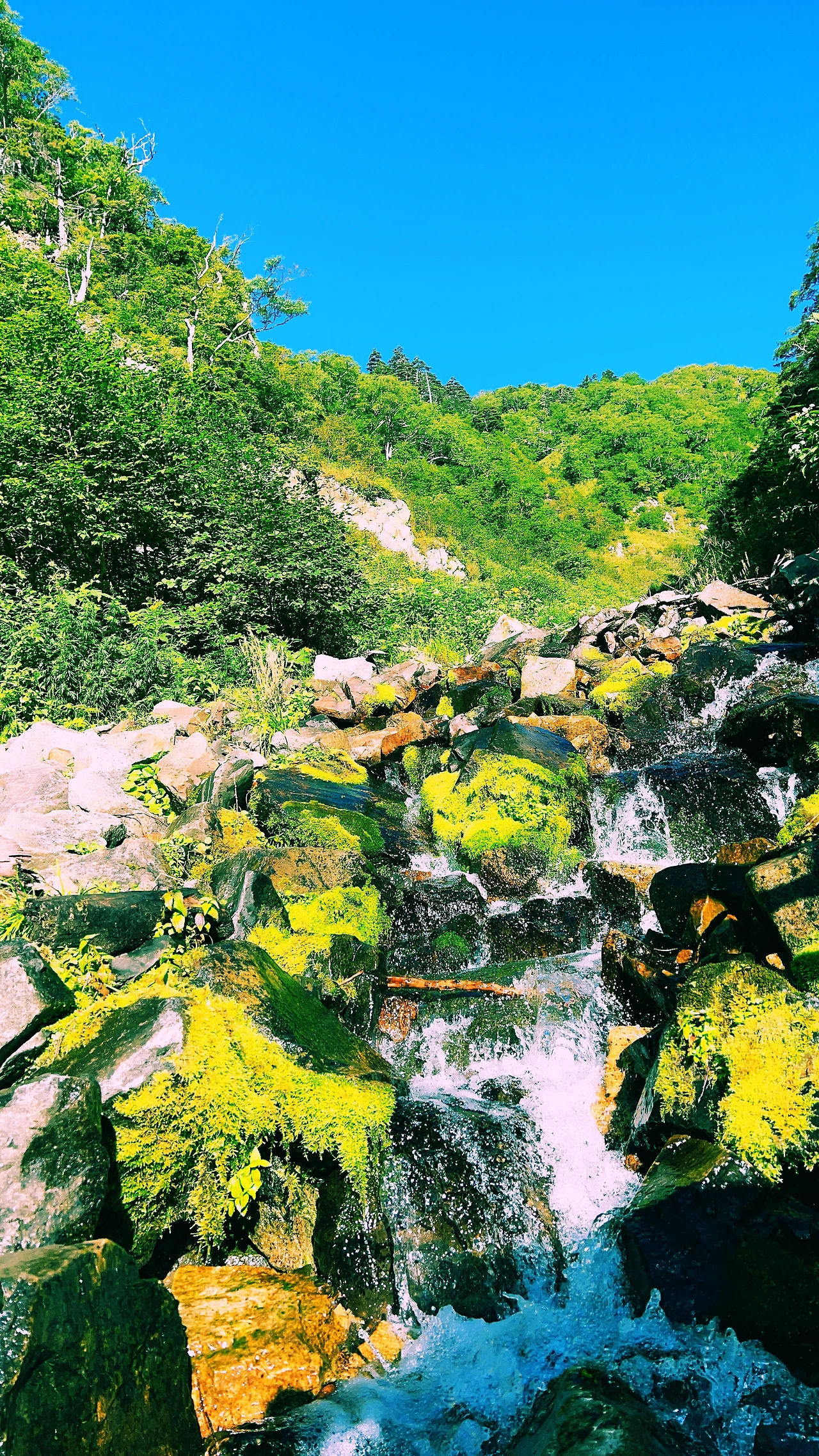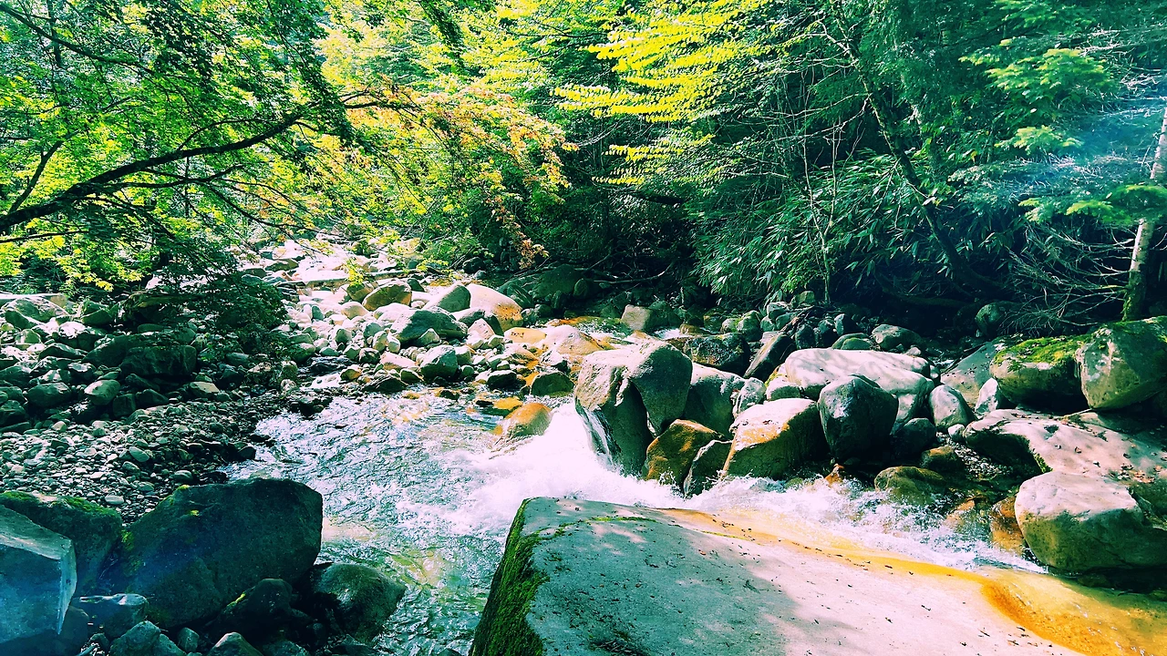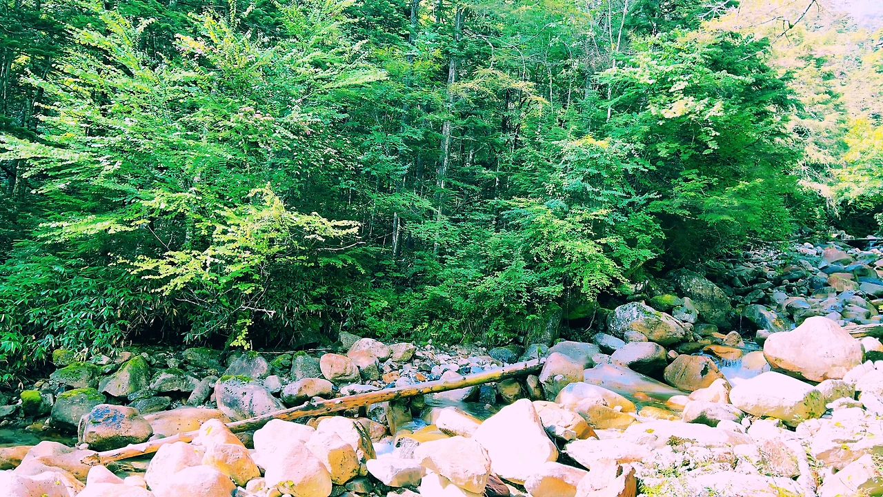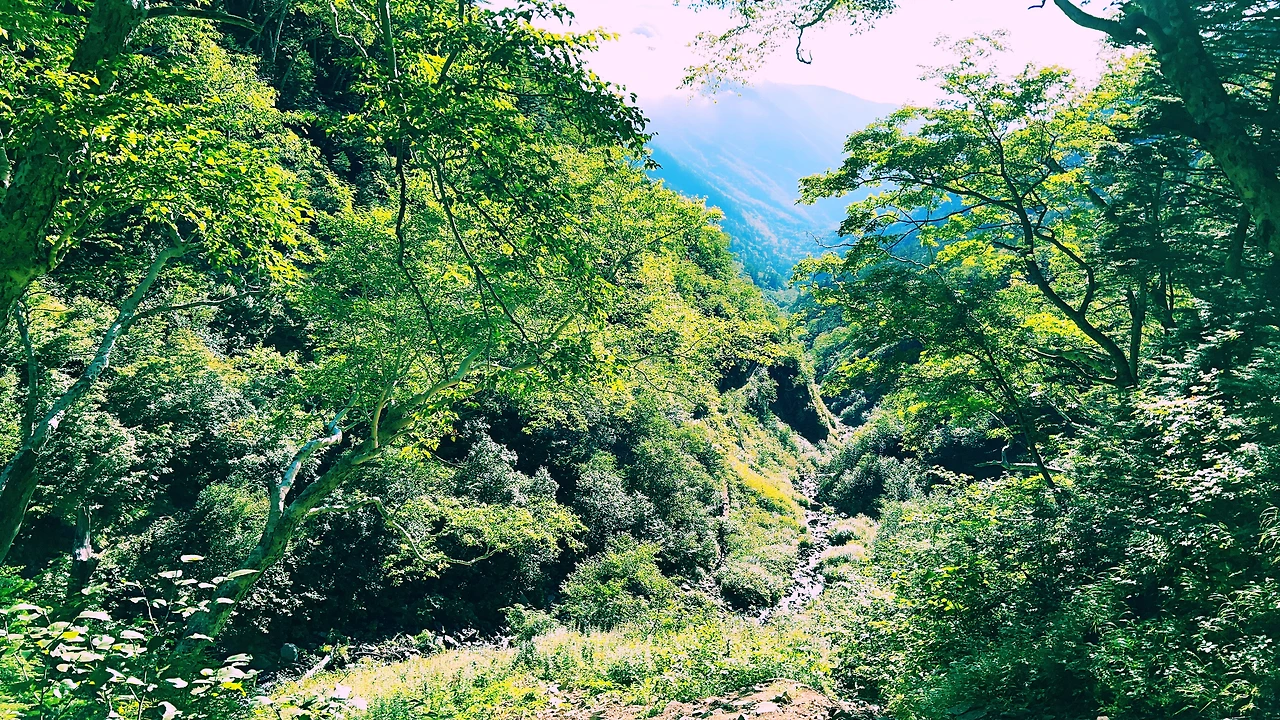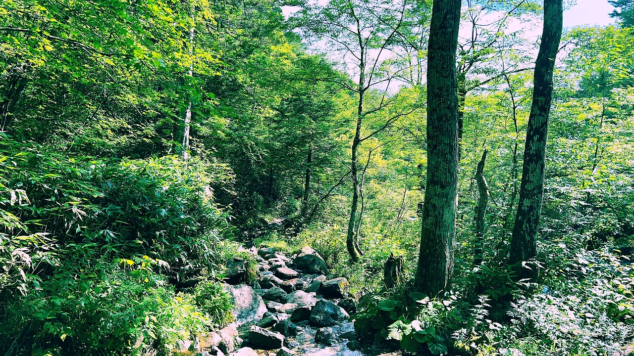 감동적인 일출을 보고 아침식사를 한 후 바로 하산길에 오릅니다. 종주코스와는 다르게 샛소리를 들으며 목이 마르면 계곡물을 마시며 키타알프스의 싱그러움과 아름다움을 만끽하며 내려왔습니다.