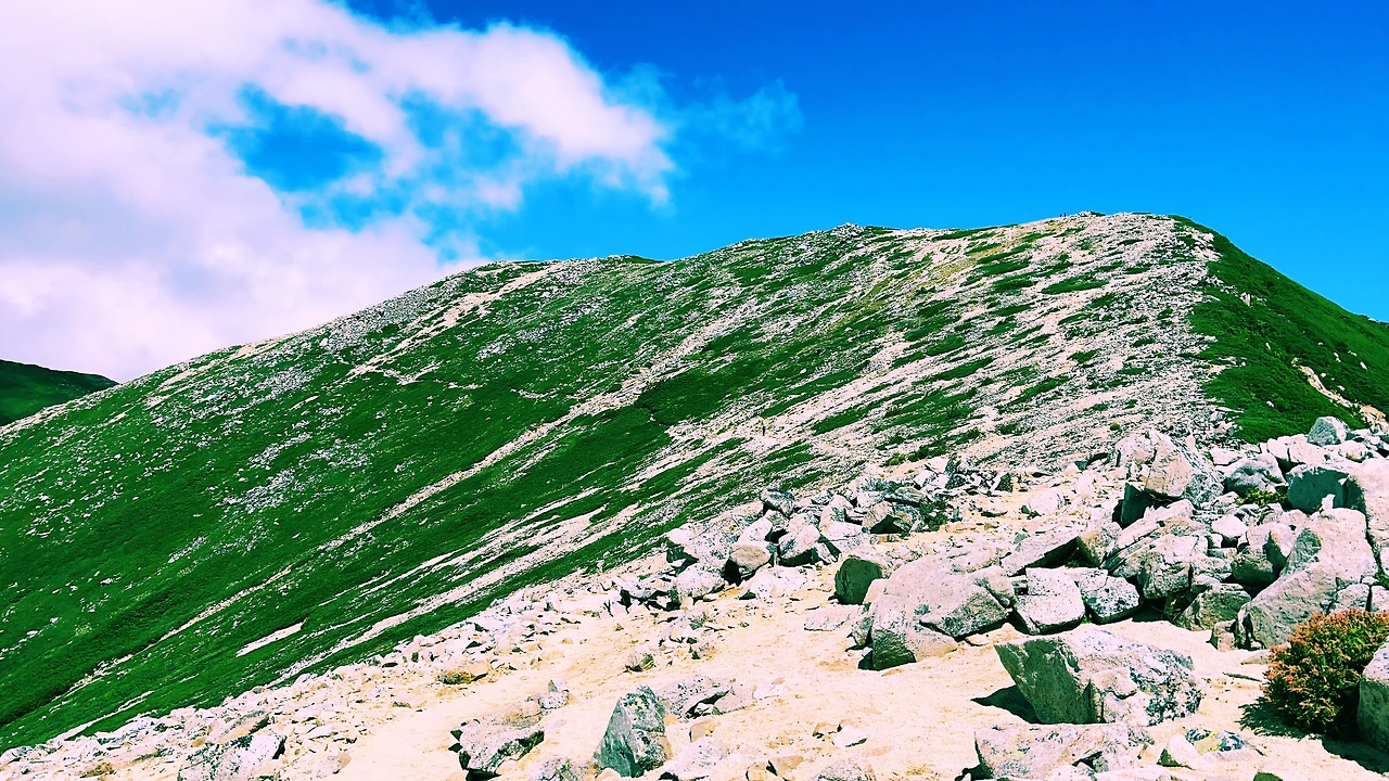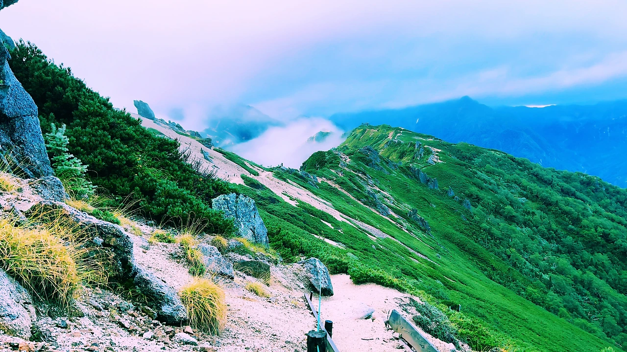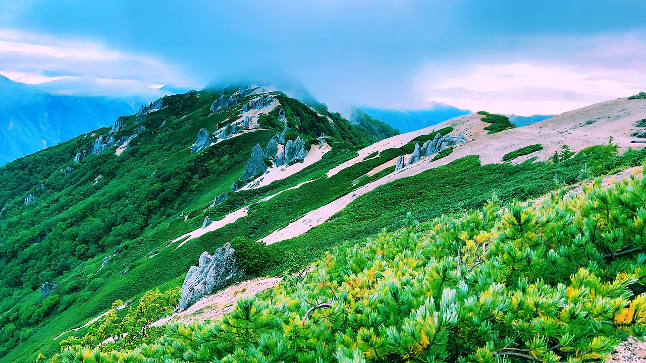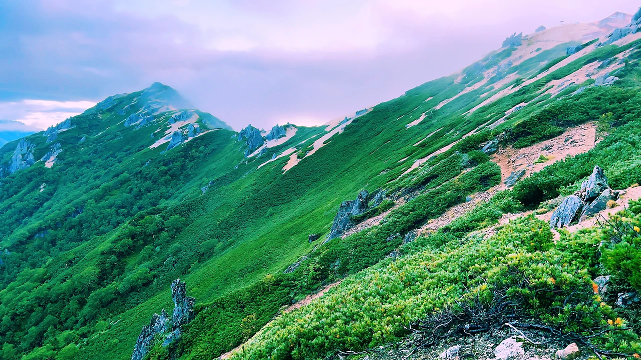 2일차 엔잔소-오오텐쇼타케-조넨고야(산장) 종주 코스, 약 6시간 정도의 코스로 키타알프스의 멋진 풍광이 정말 매력적인 코스입니다.