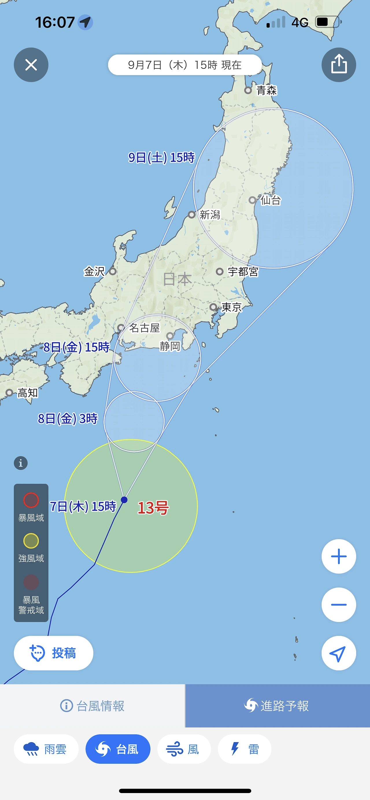 당초 에상보다 태풍진로가 바뀌면서 3박4일간 전체일정중 실제 등반이 시작되는 날 새벽부터 태풍영향권으로 들어가게 되는 긴급사태가 발생! 계획을 수정하여 최초 등반 개시시점을 오전 7시에서 10시로 수정하며 비와 바람상황을 살펴보기로 합니다. 태풍 속도가 늦어지거나 진로가 안좋아질경우 이번 산행 전체를 포기할 수 밖에 없는 상황이었습니다.