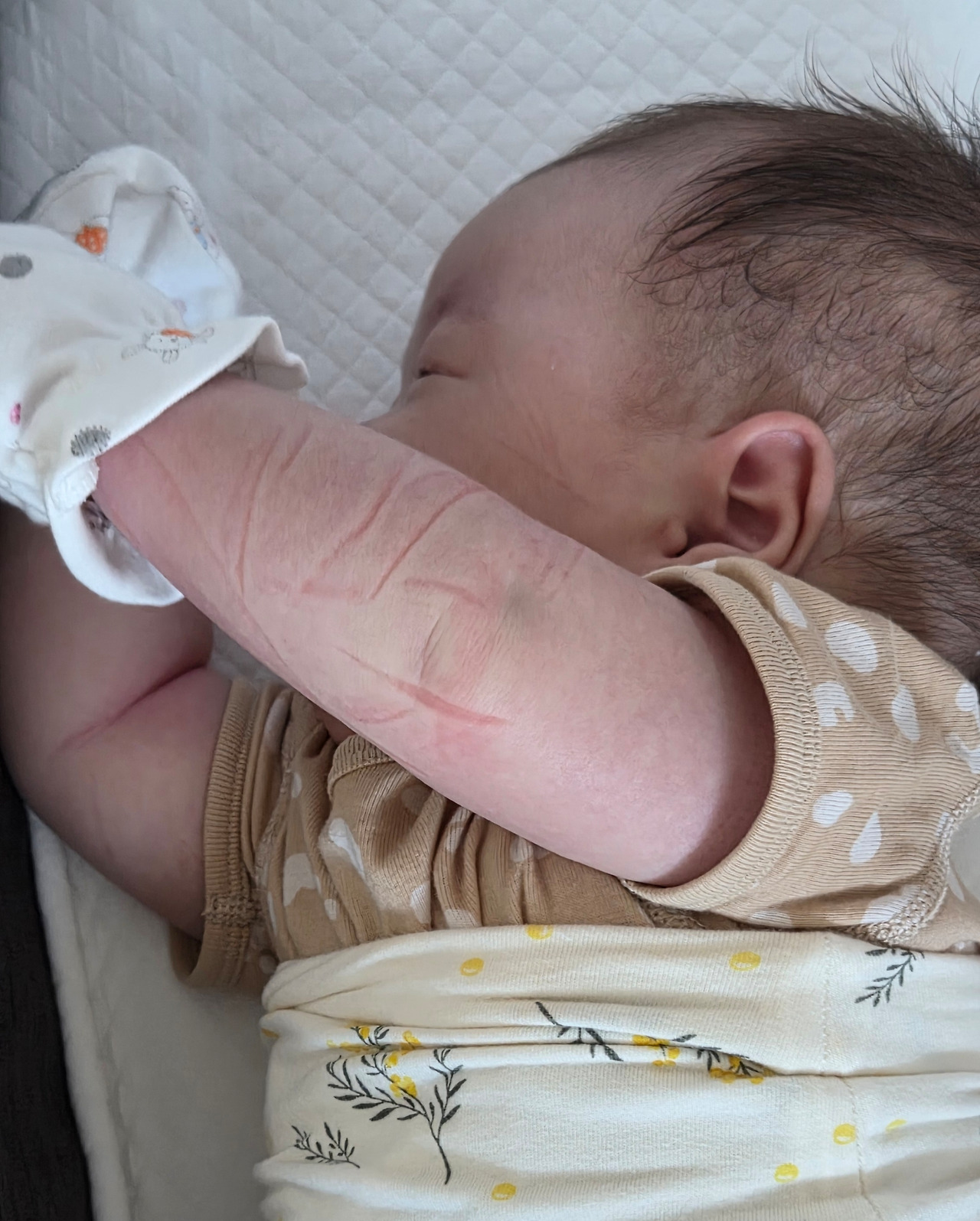 (오늘도 수면교육에 실패해서 안아 재우느라 자국난 아기)