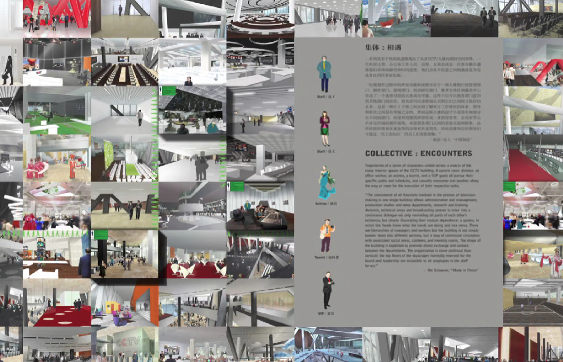 베이징 CCTV 본사 건물을 설계 의뢰를 받았을 때도 어떻게 하면 스토리로 공간의 형태를 결정할 것인지에 대한 고민이 선행되었다고 한다.