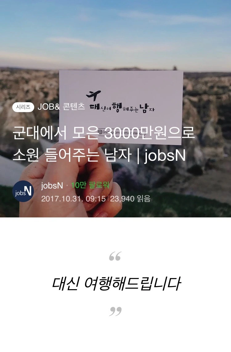 '대신여행해주는남자' 라는 컨텐츠가 더 강조