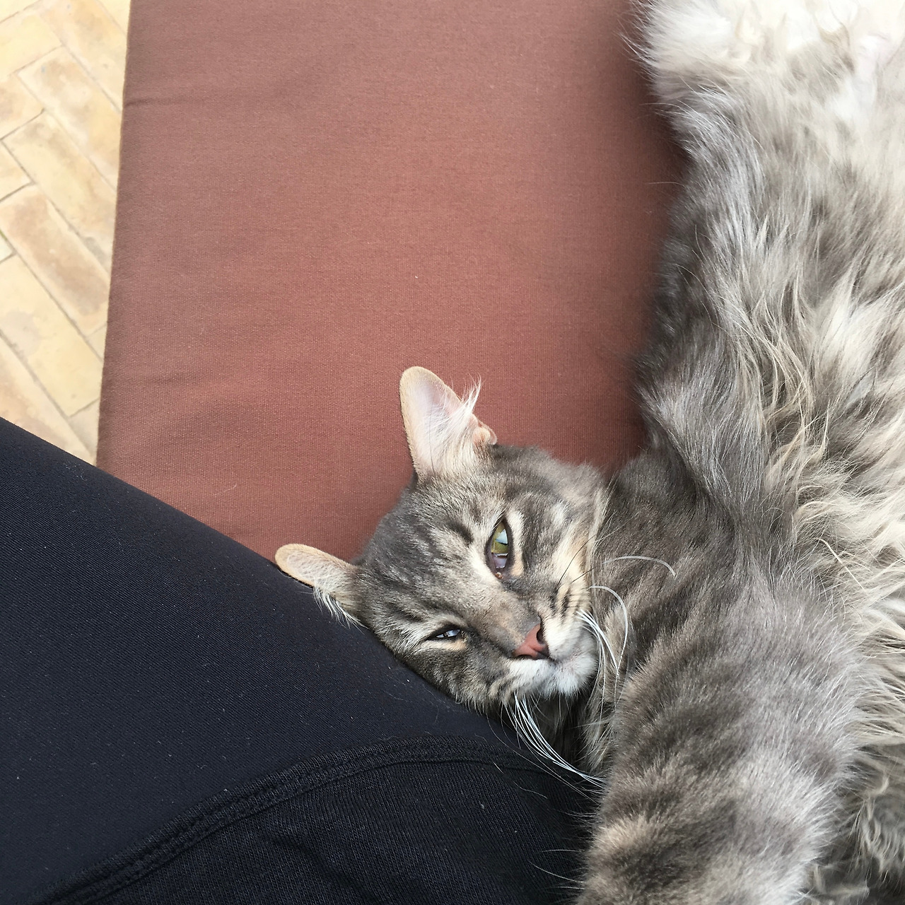 소파에 앉아 있으면 내 허벅지를 턱 하고 베고 눕는다. 아잇, 내 심장,,