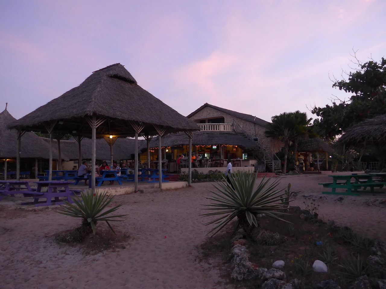 짐을 풀고 오솔길을 지나 해변 옆 식당에 가니 해가 뉘엿뉘엿 지고 있었다. 하늘이 핑크색으로 물들었다.