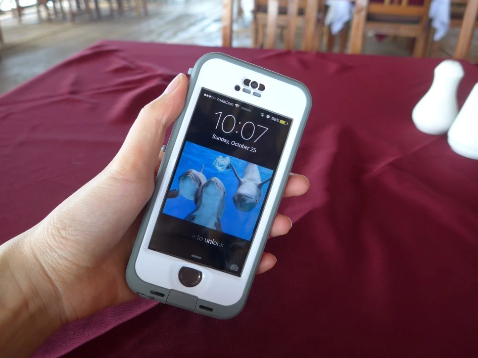 여행과 지름신은 짝궁이다. 갑자기 멀쩡하던 수영복도 촌스러워 보이고, 편하기 그지없는 운동화도 미심쩍다.이게 다 지름신의 수작이다. 이번 여행 전 내게 가장 오래 머물었던 지름신은 내게 '아이폰 방수케이스'를 들고 나타났다. "물 속에서 돌고래 찍고 싶지 않니?", "방수카메라 사는 것보다 방수케이스가 훨씬 저렴하단다." 아아, 달콤한 속삭임. 수많은 리뷰를 읽고 나는 가장 믿음직스러워 보이는 방수케이스를 주문했다. 가격은 8만원. 그만한 값어치가 분명 있을 것이라 믿어 의심치 않았다. 집 화장실에서 꽤 여러번 테스트를 감행했다. 물 속에서도 핸드폰 터치가 가능한 신박한 나의 방수케이스!